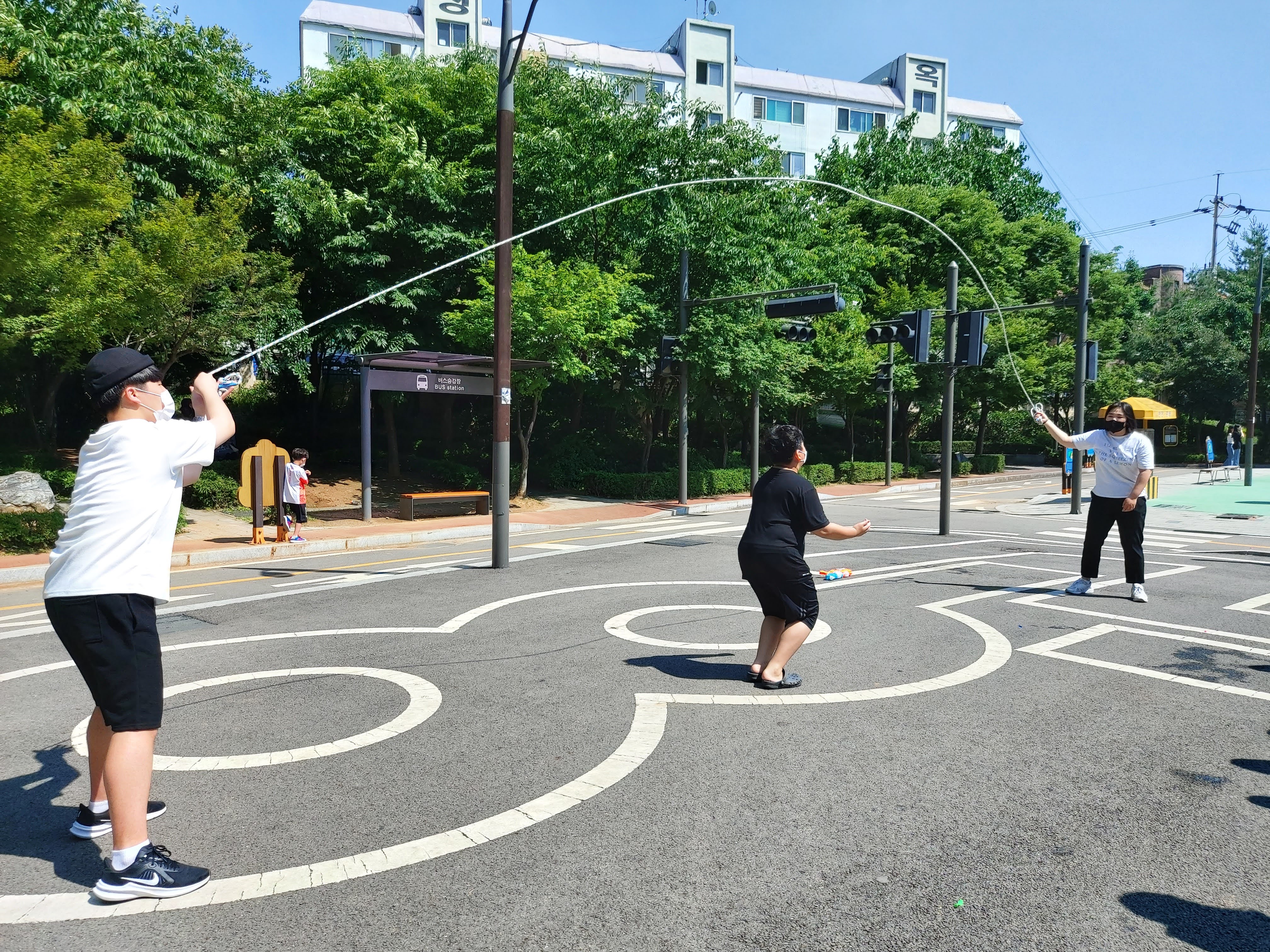 초등학생들은 긴 줄넘기, 고무줄, 땅따먹기 등 놀잇감을 가지고 노는 것에