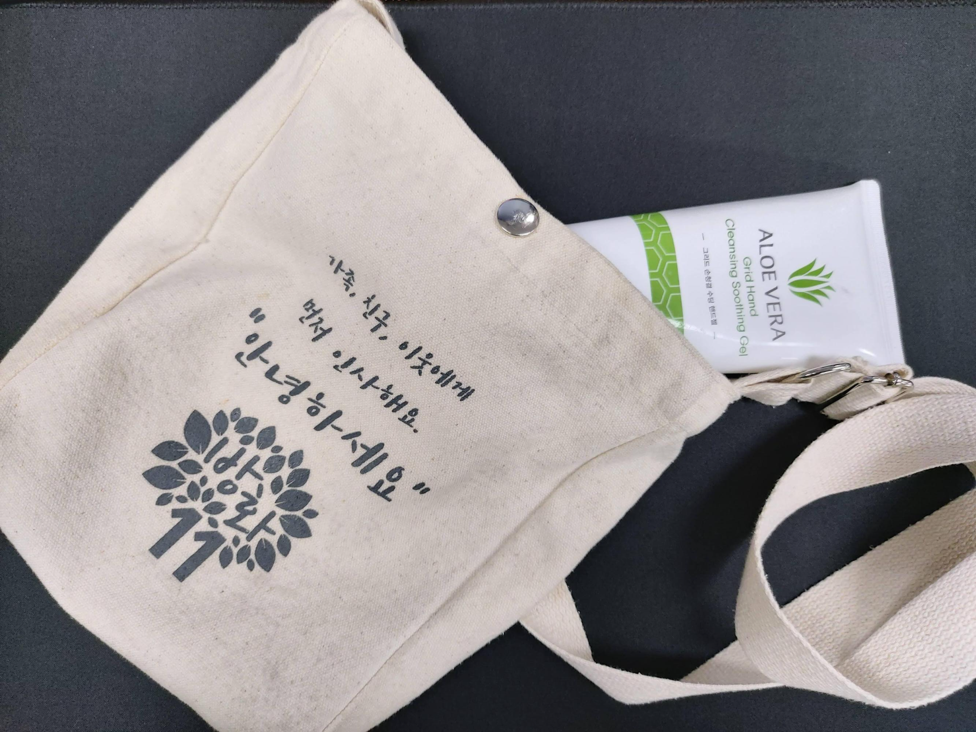 소박하지만 복지관 보조 가방에 손소독제를 챙겨 팀별로 가지고 나갔습니다.