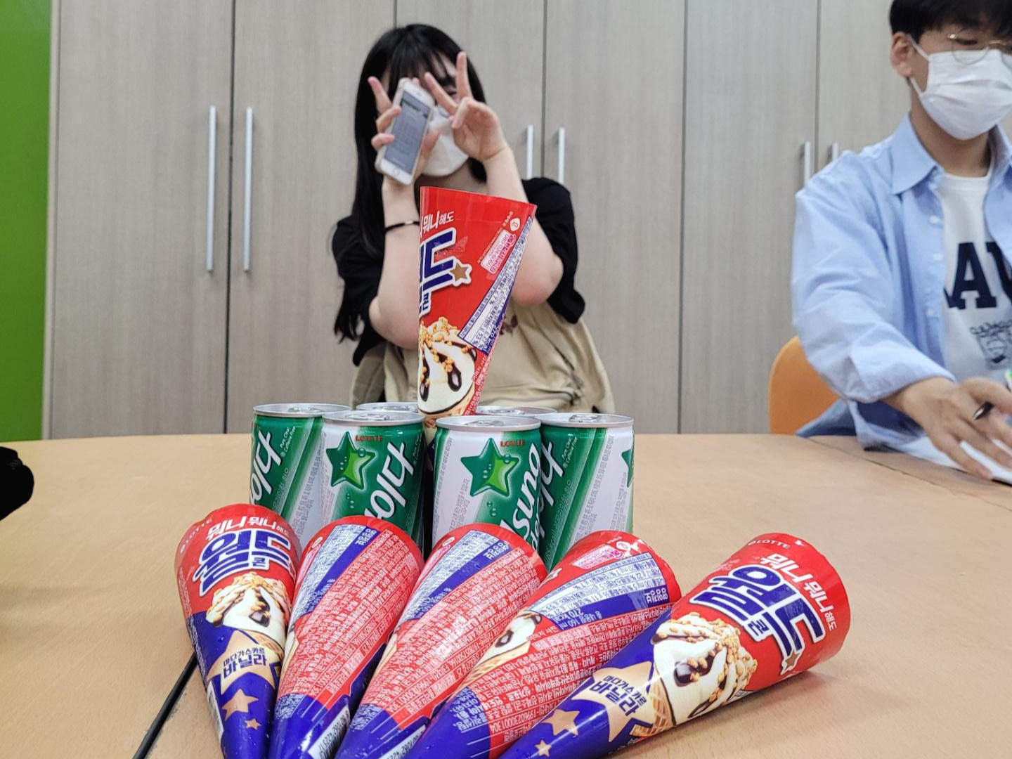 재미와 감사를 전하고 싶어서 자신이 싸 온 음료를 나눠주거나