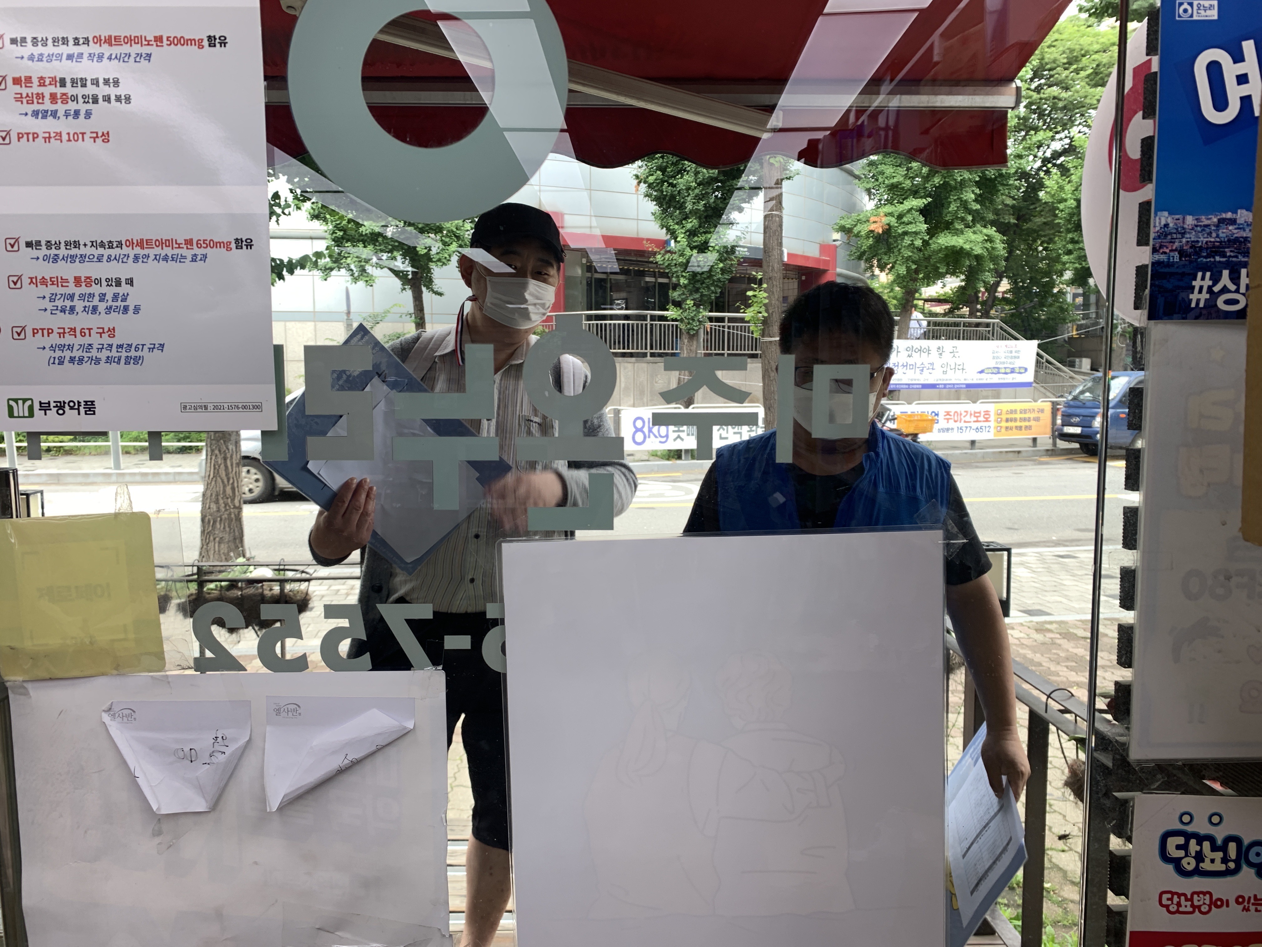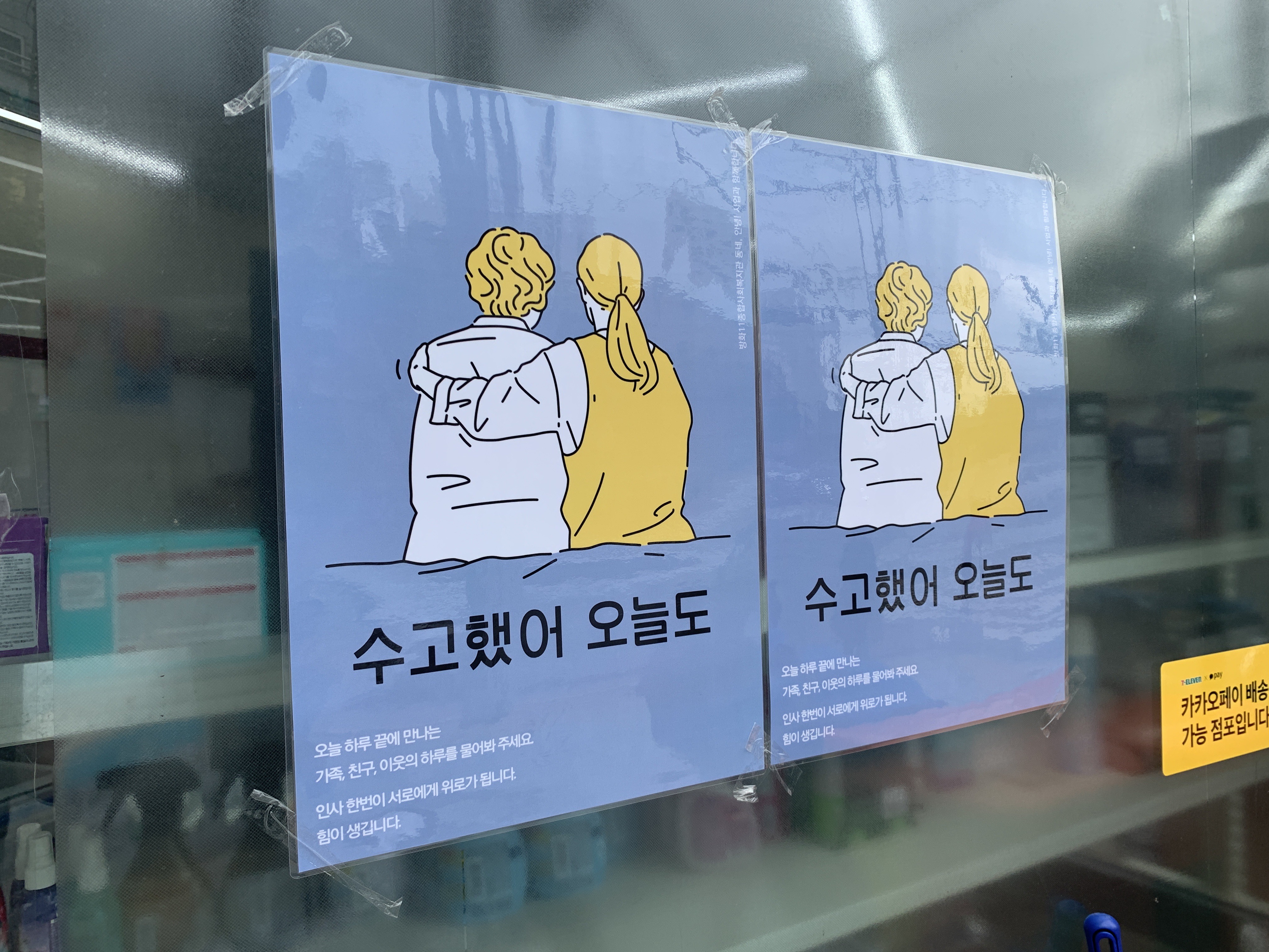 "봐주시는 것만도 감사하네요. 잘 보이는 곳에 붙여주셔서 고맙습니다. 사장님."