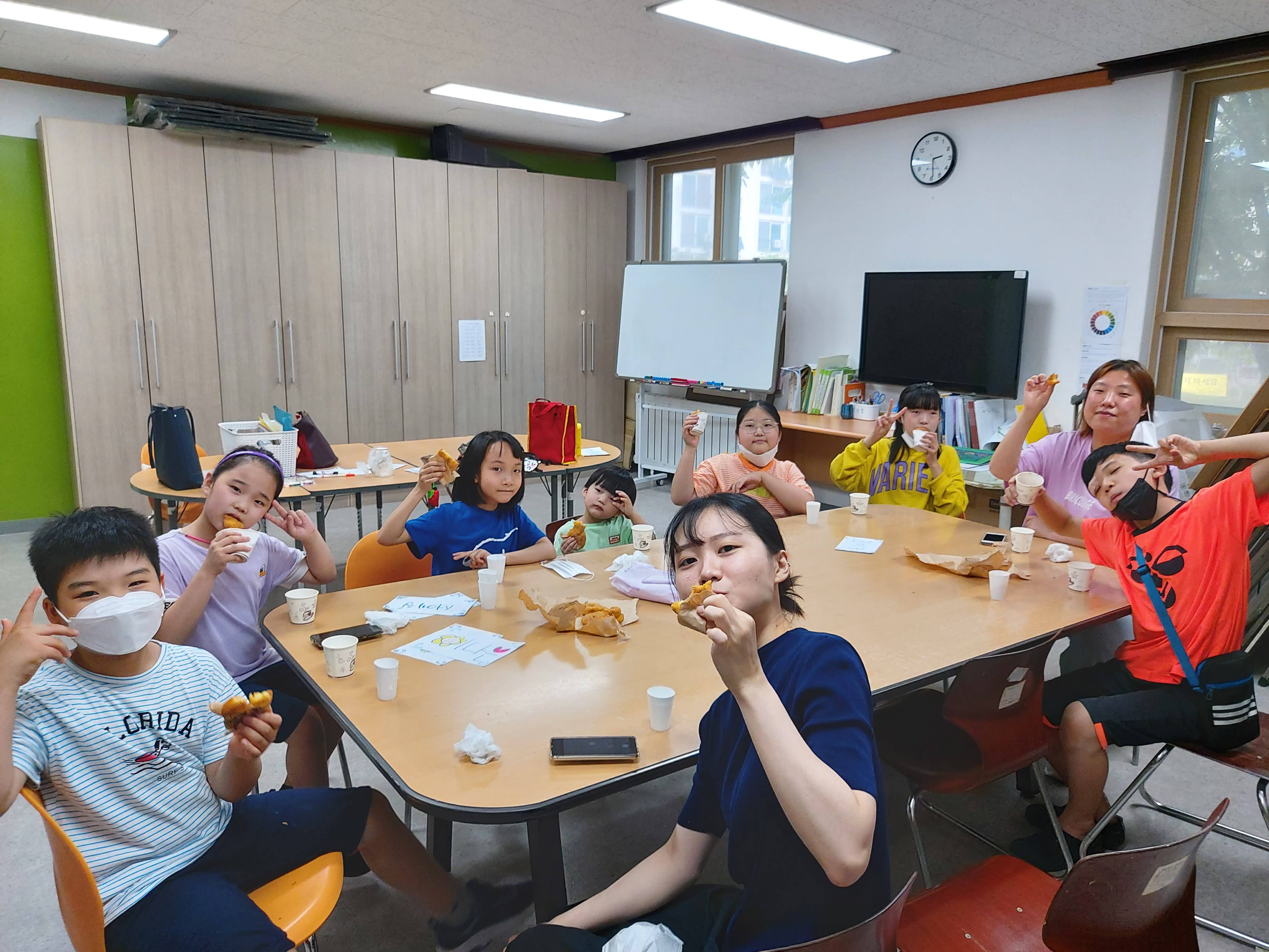 다 같이 손을 씻고 맛있는 꽈배기를 먹었습니다.