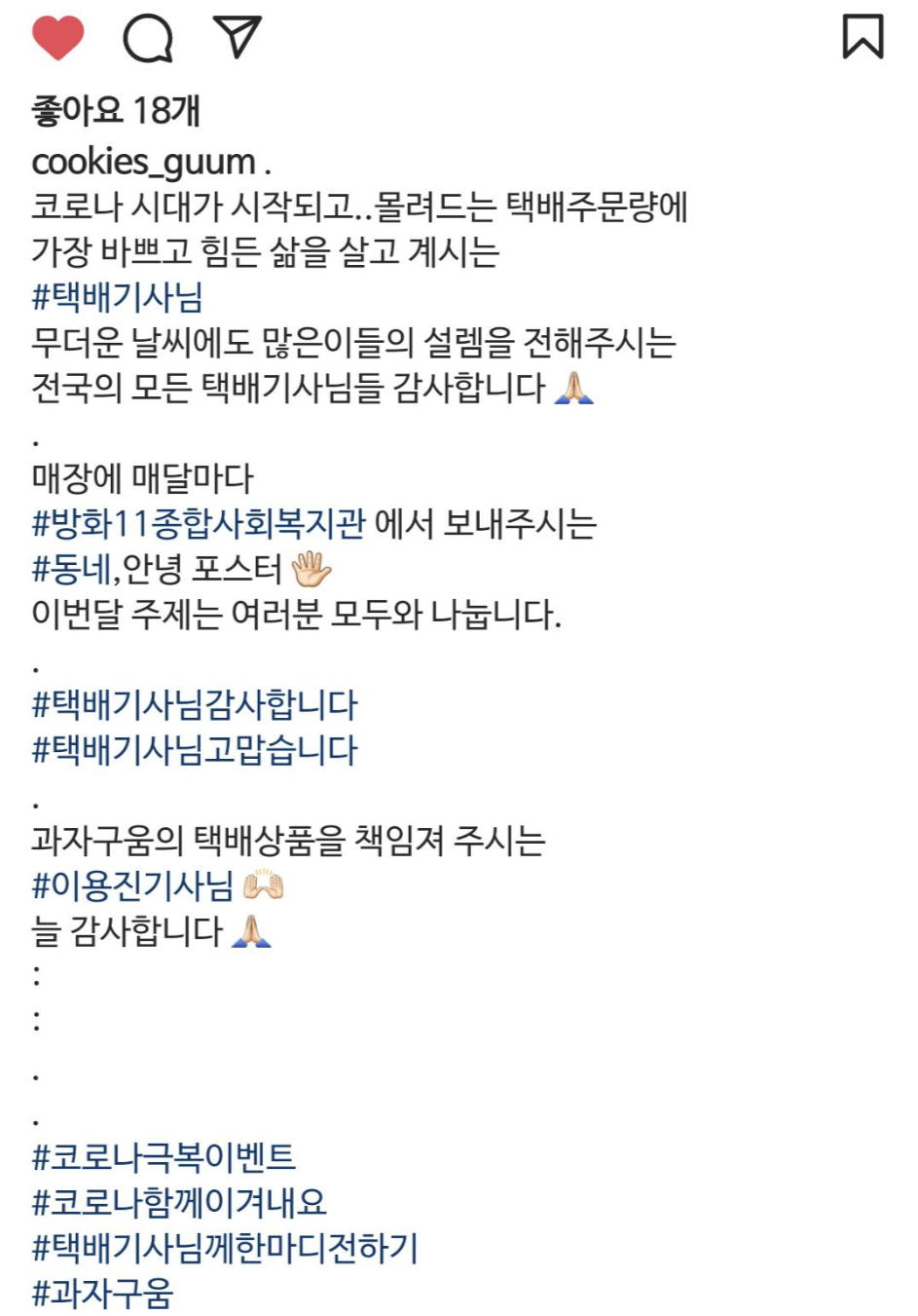 과자구움에 방문하니 사장님께서 이번 달 포스터 내용이 참 좋은 것 같다며 과자구움 인별그램에 공유해주셨다고 이야기해주셨습니다.