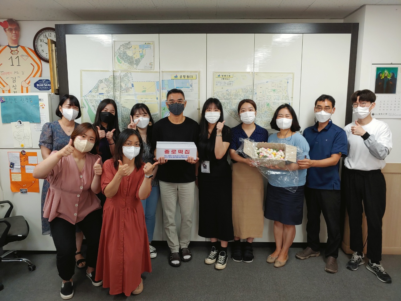 종로 떡집 사장님께서 맛있는 떡을 나누어 주셨습니다.