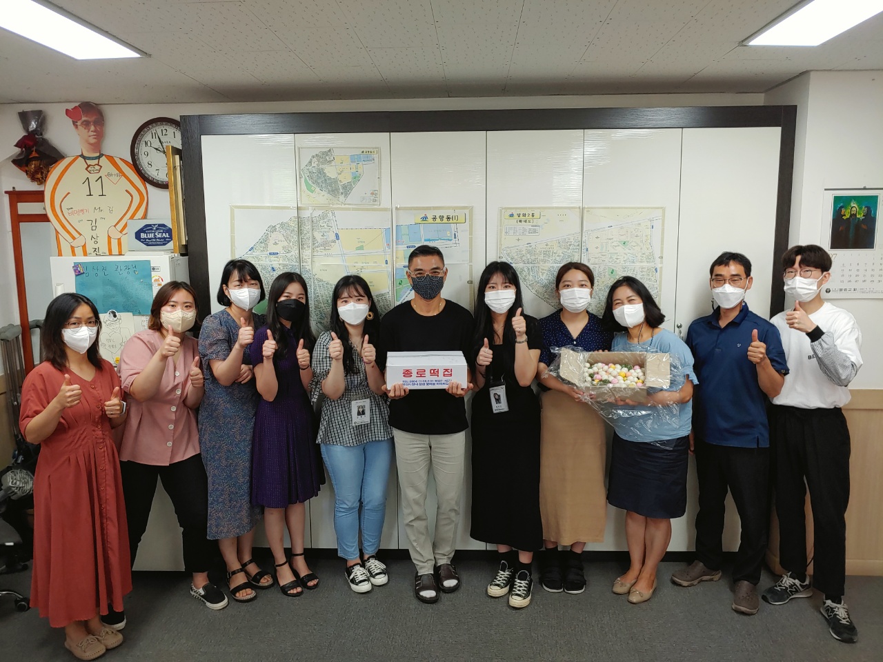 종로 떡집 사장님께서 맛있는 떡을 나누어 주셨습니다.