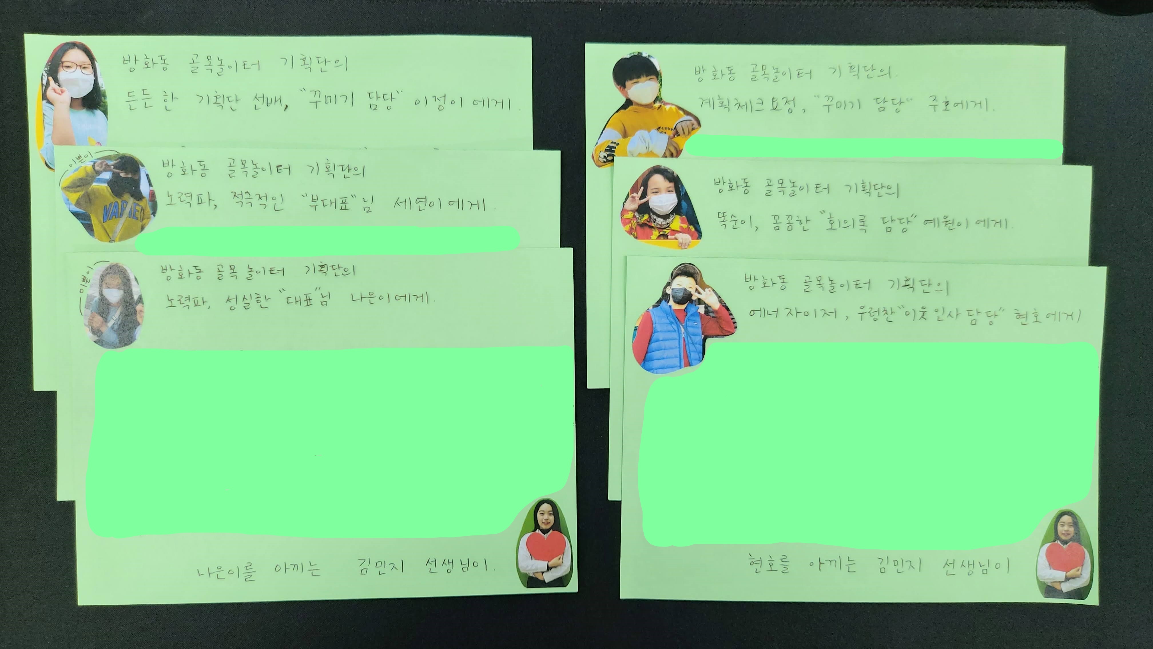 아기자기하고 예쁜 감사 편지들이 만들어졌습니다.