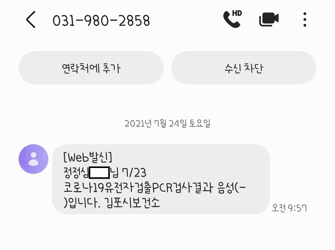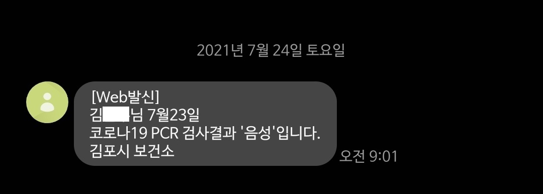 2차 검사 완료 : 7월 23일 (금), 전원 음성