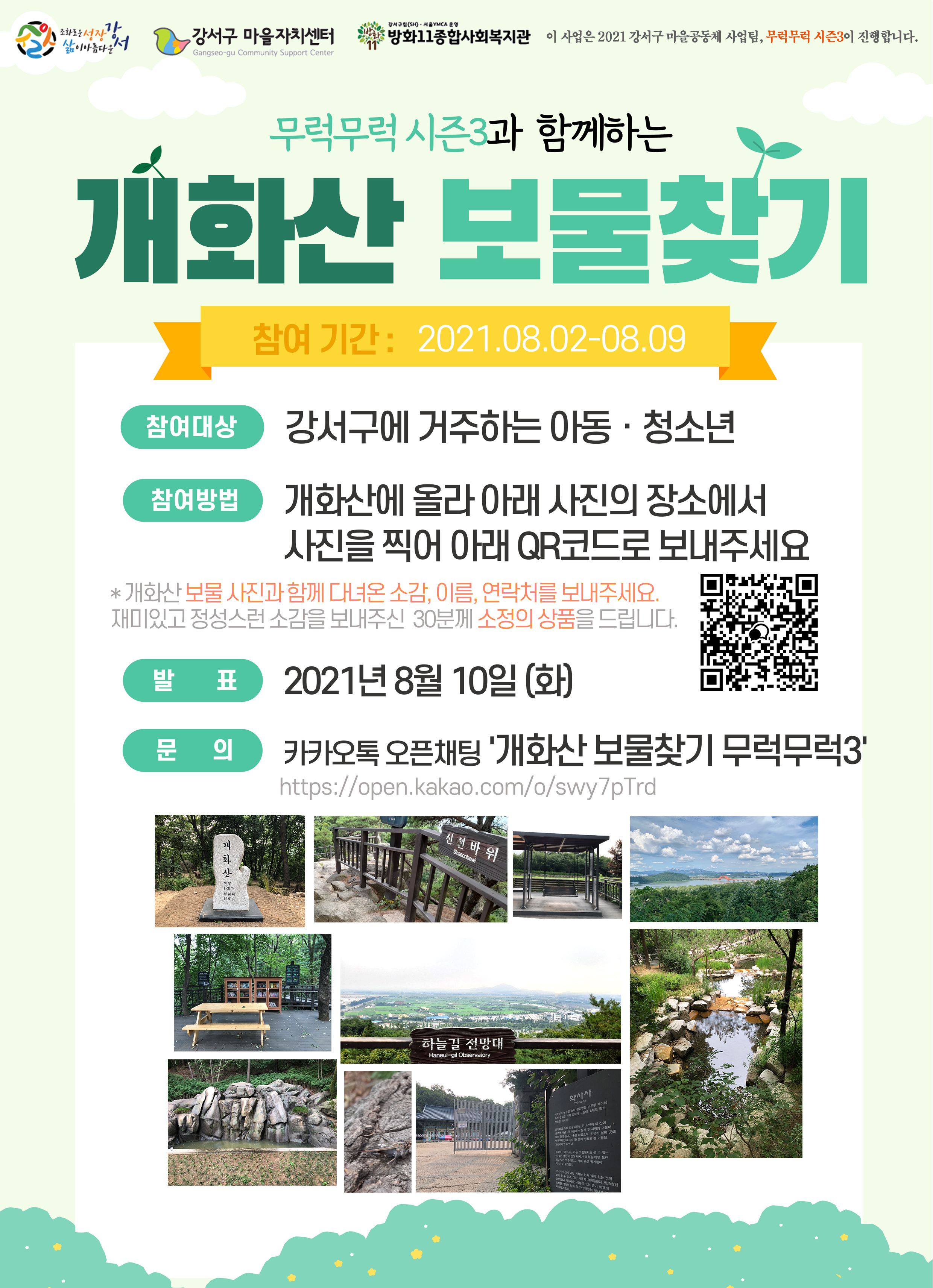 주민모임 '무럭무럭시즌3'에서 개화산에서 보물찾기 이벤트를 열었습니다.