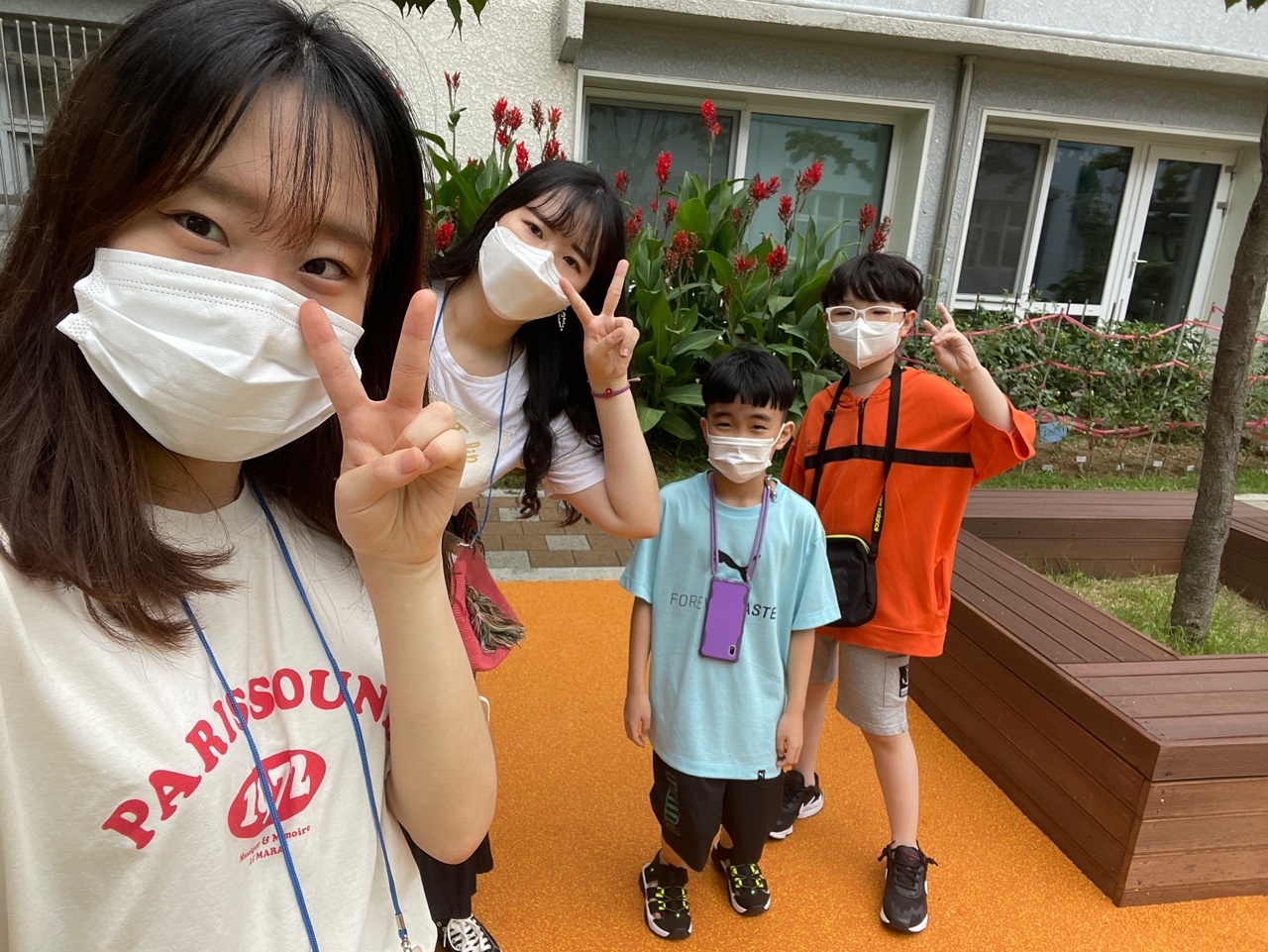 교장 선생님과 촬영 후에 학교 건물 앞에서 한 번 더 촬영했습니다.