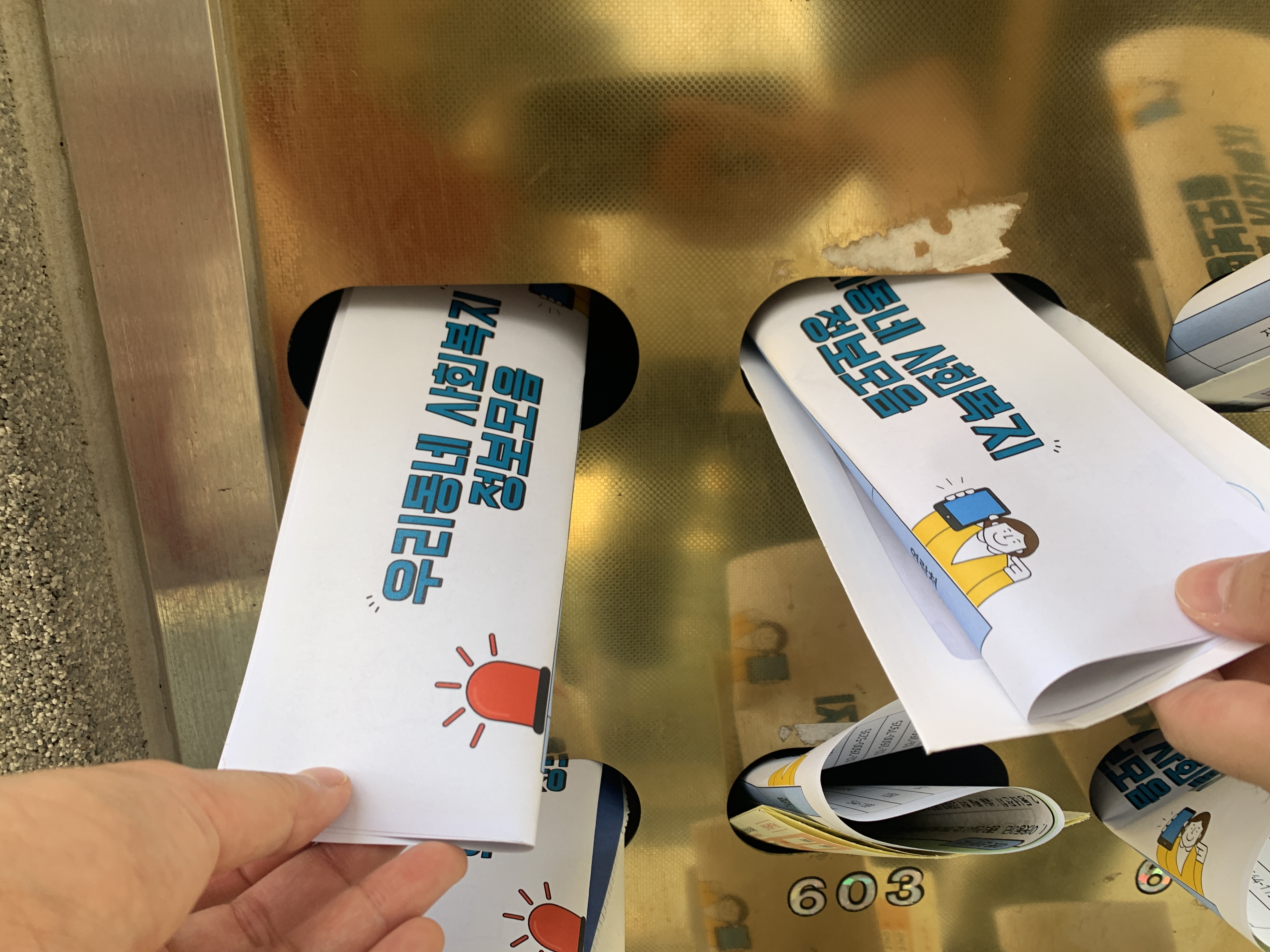 관리소장님은 관리사무소 옆 복도 통로에 홍보지를 놓아주셨습니다.