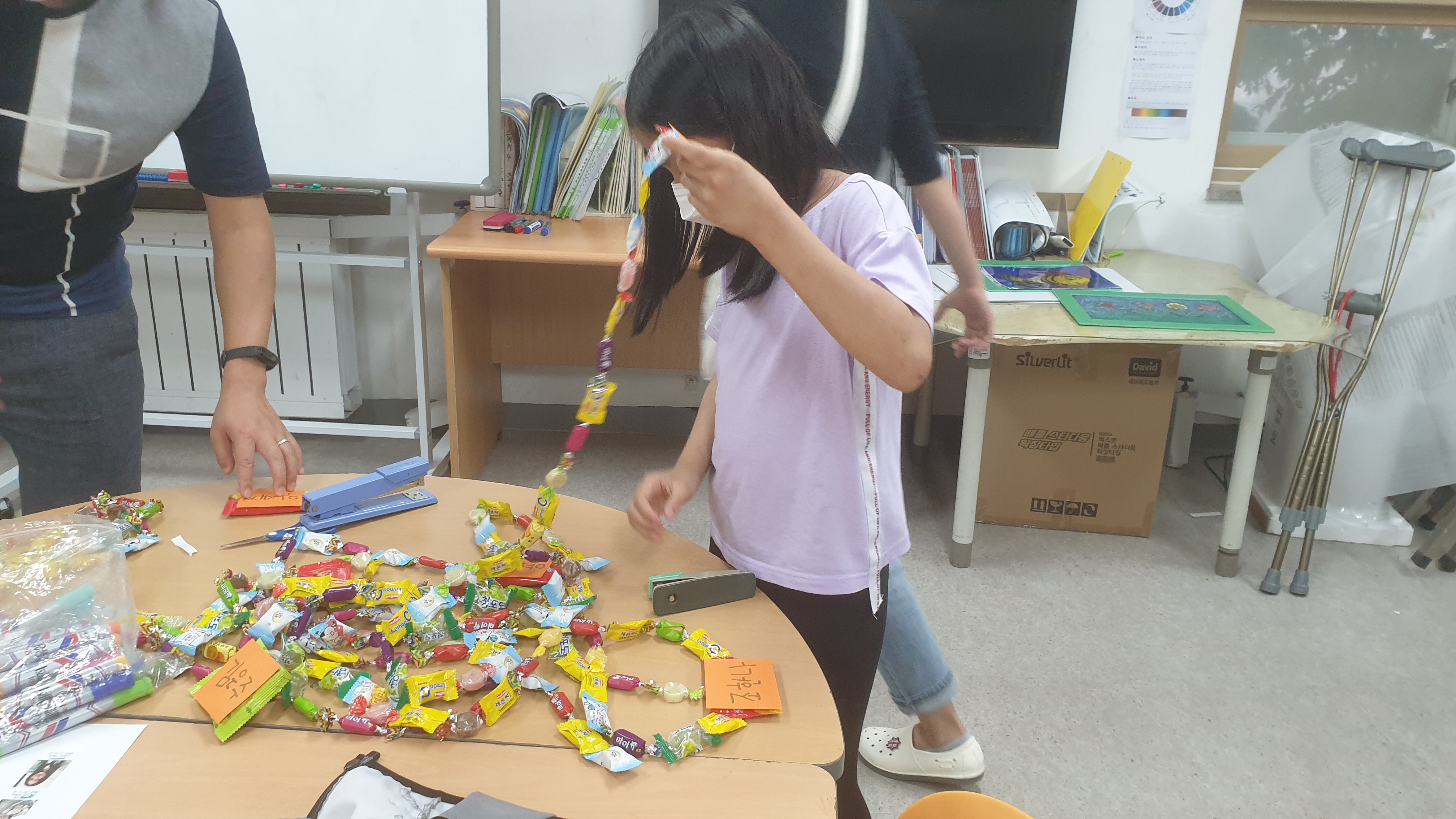 환영하는 안내지와 사탕 목걸이도 만들어서 실습생을 맞이 준비했습니다.