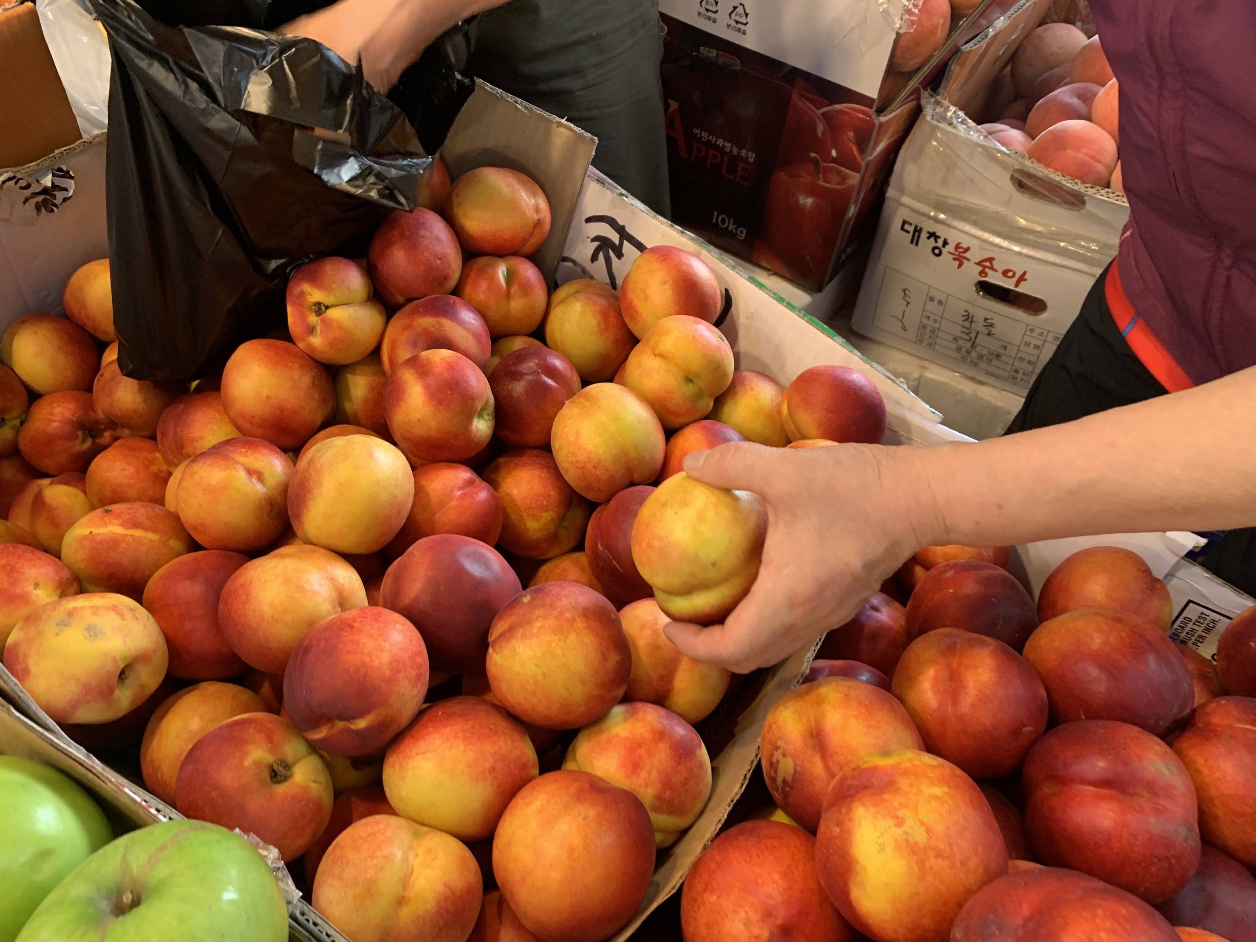 다섯 곳 넘게 둘러보시곤 가장 괜찮은 곳을 정해 과일을 사셨습니다.