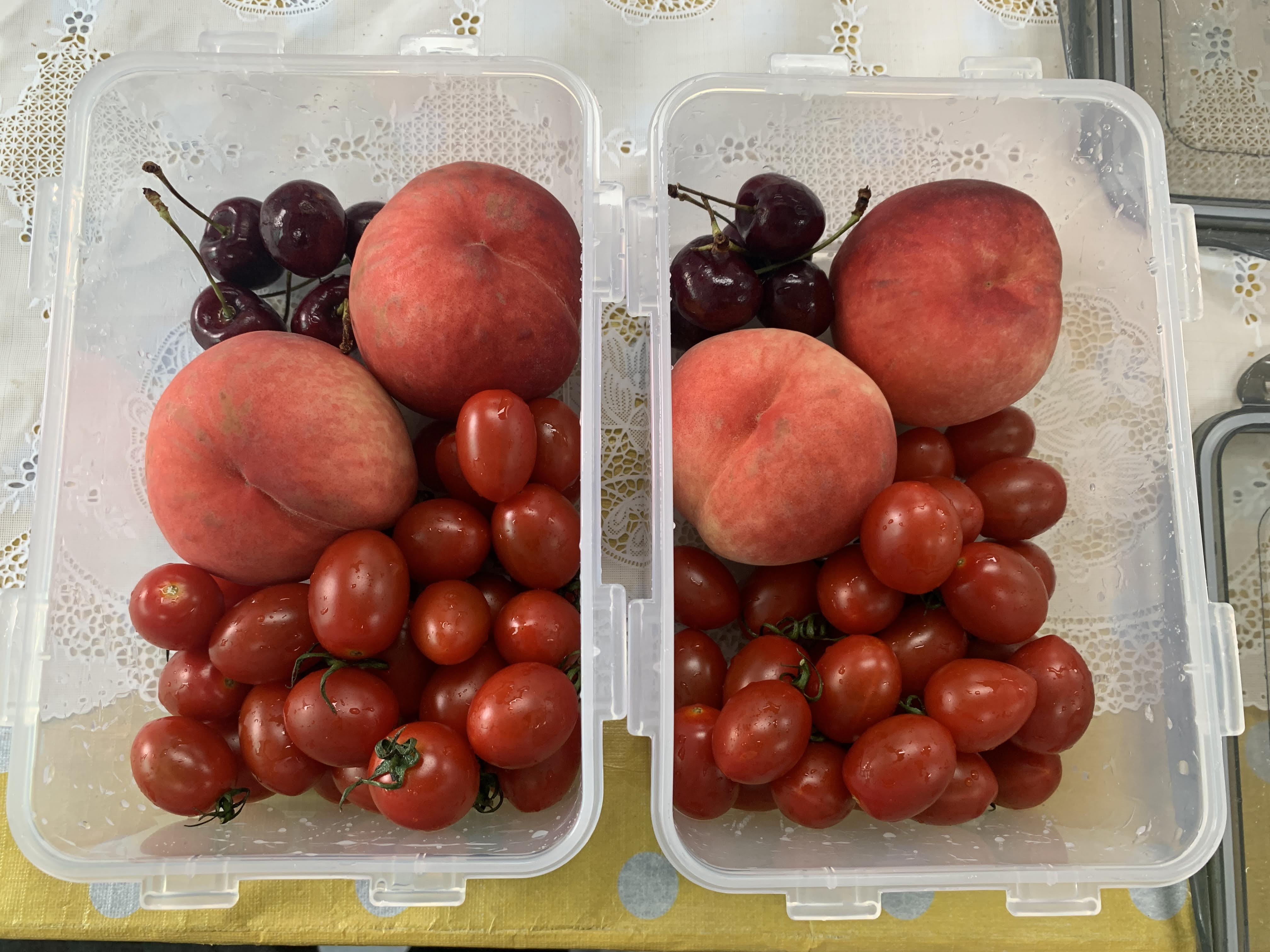토마토와 복숭아를 사와서 정영숙 님 댁에서 소분했습니다.