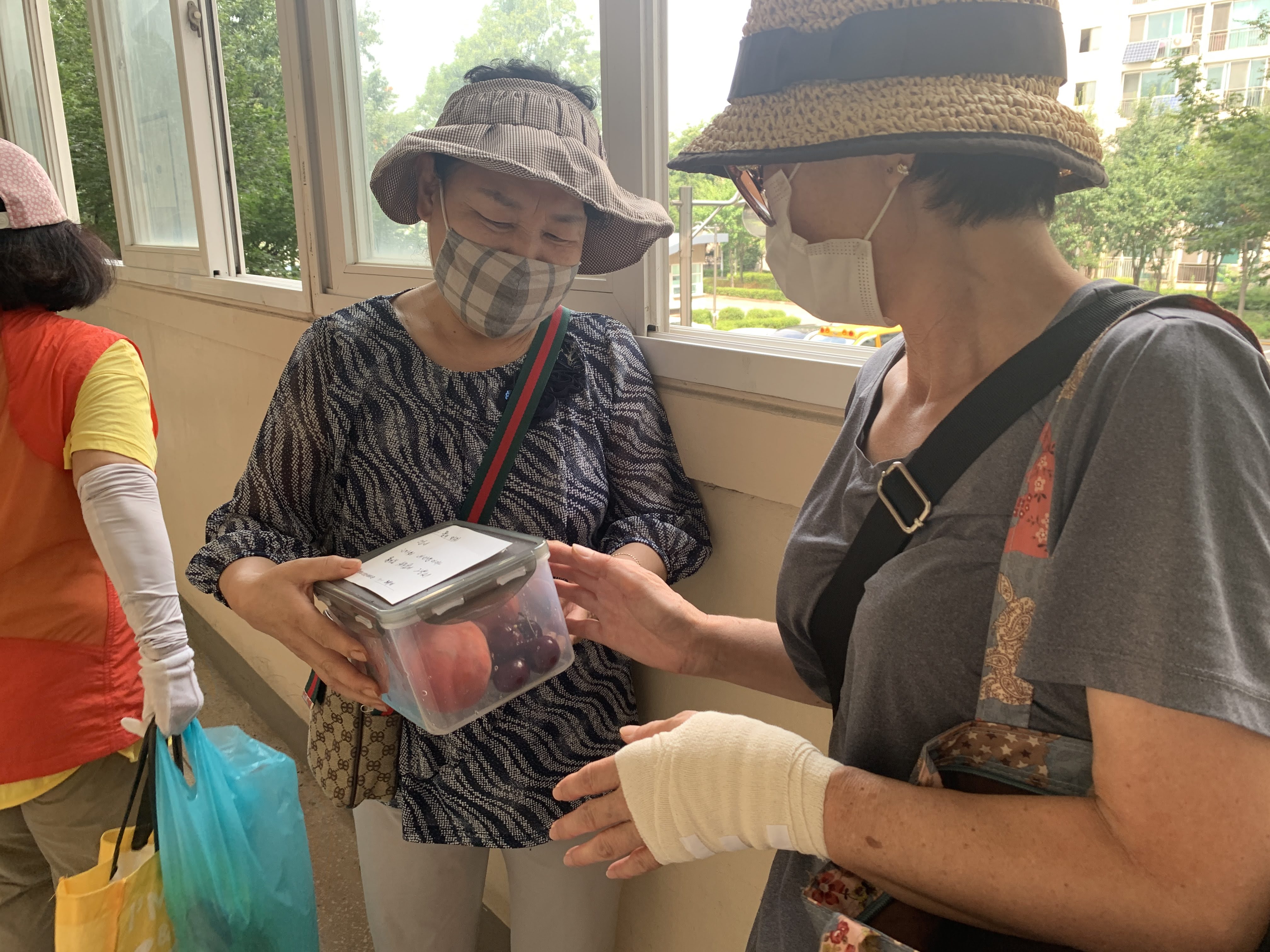 “언니~ 복날이라서 과일 좀 드시라고 가지고 왔어요. 드시고 여름 잘 보내세요.”