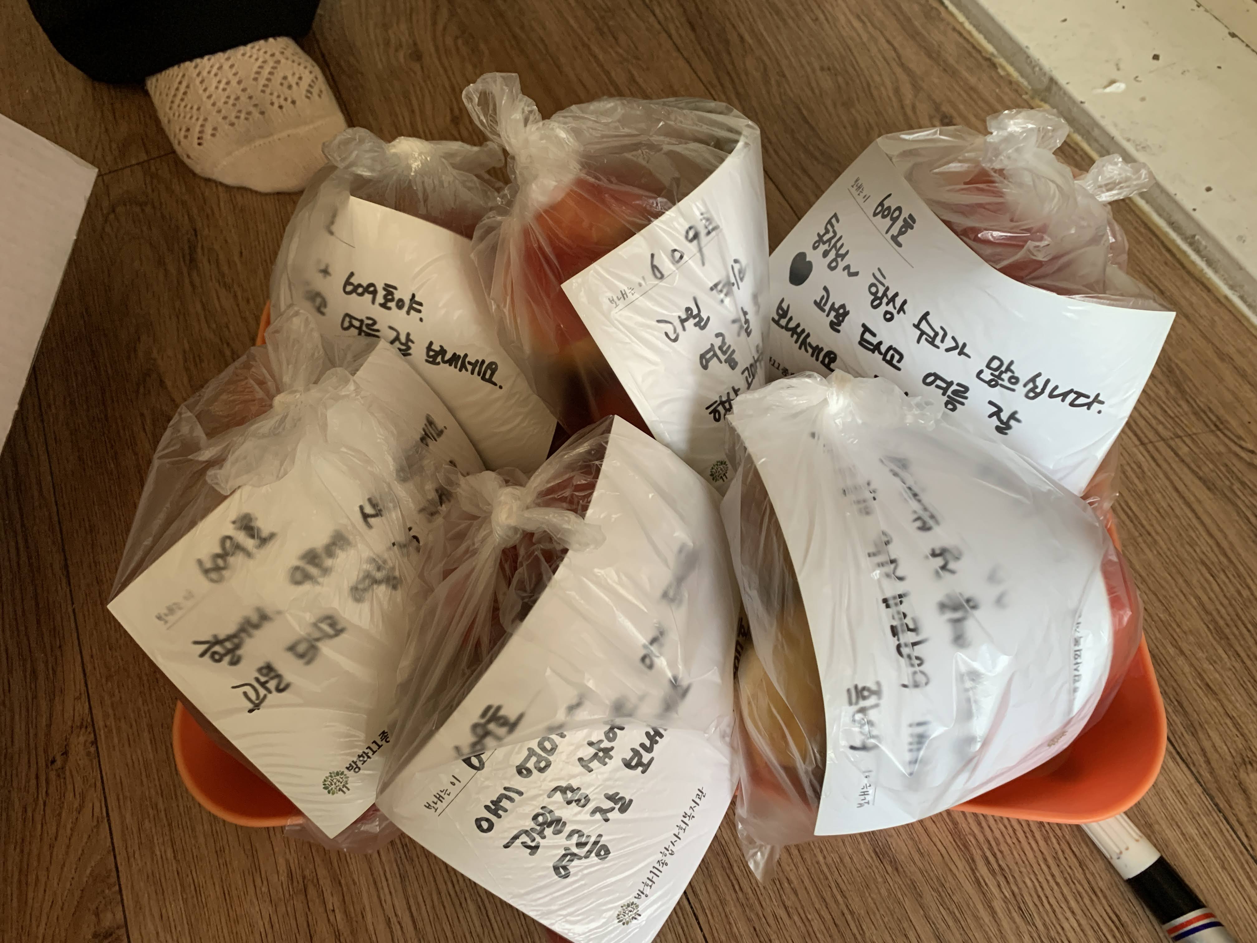 문을 열어둔 옆집도 과일 나누며 인사하는 소리 다 들었을 거라며 한 봉지 가져다드렸습니다.