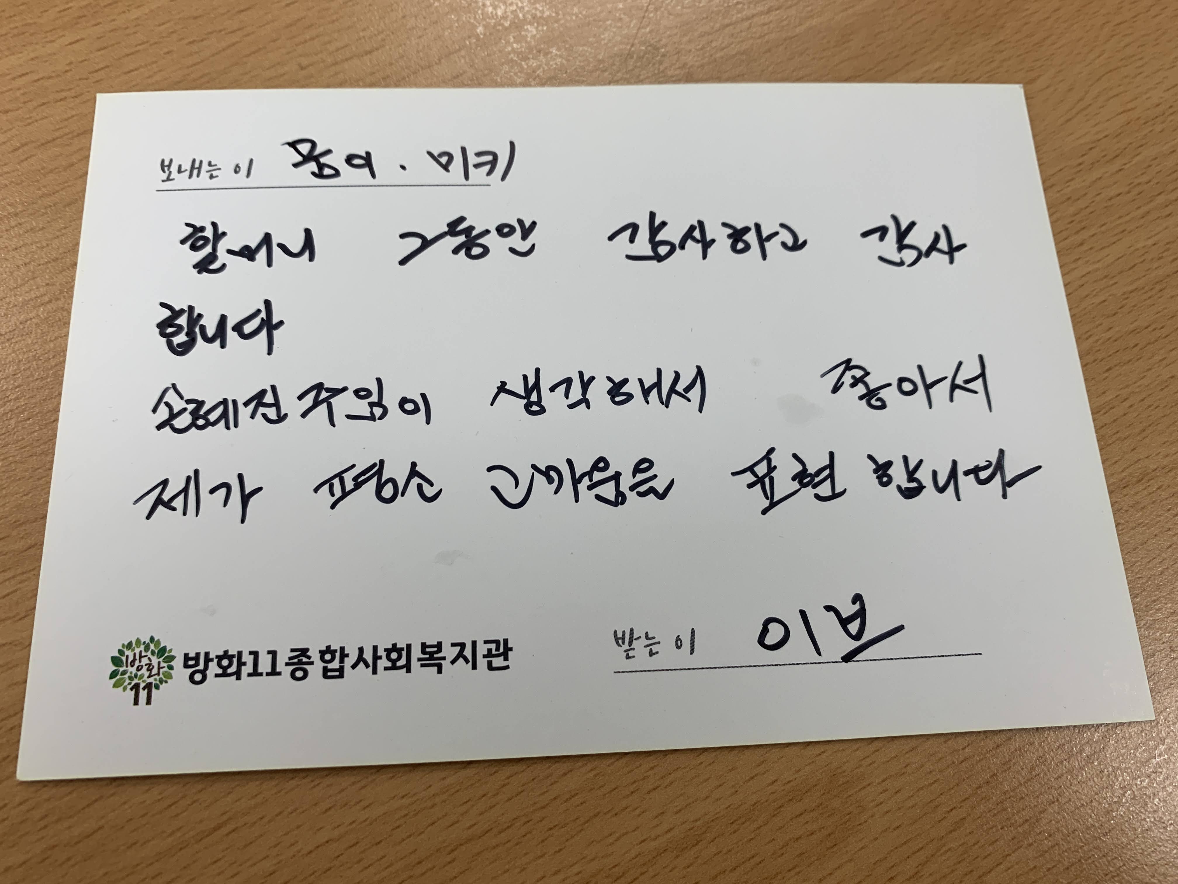 엽서에 마음을 담아 편지를 쓰셨습니다.
