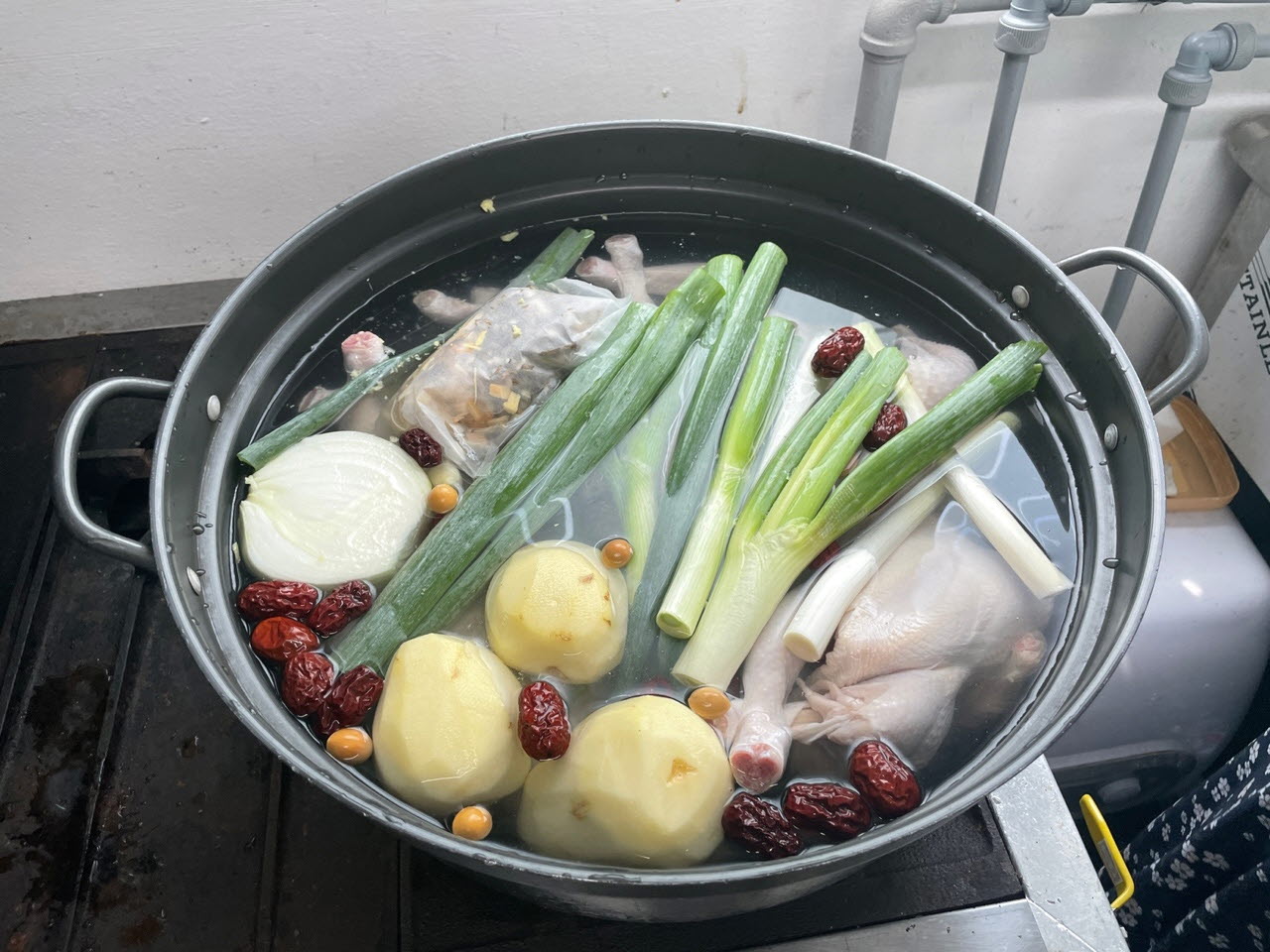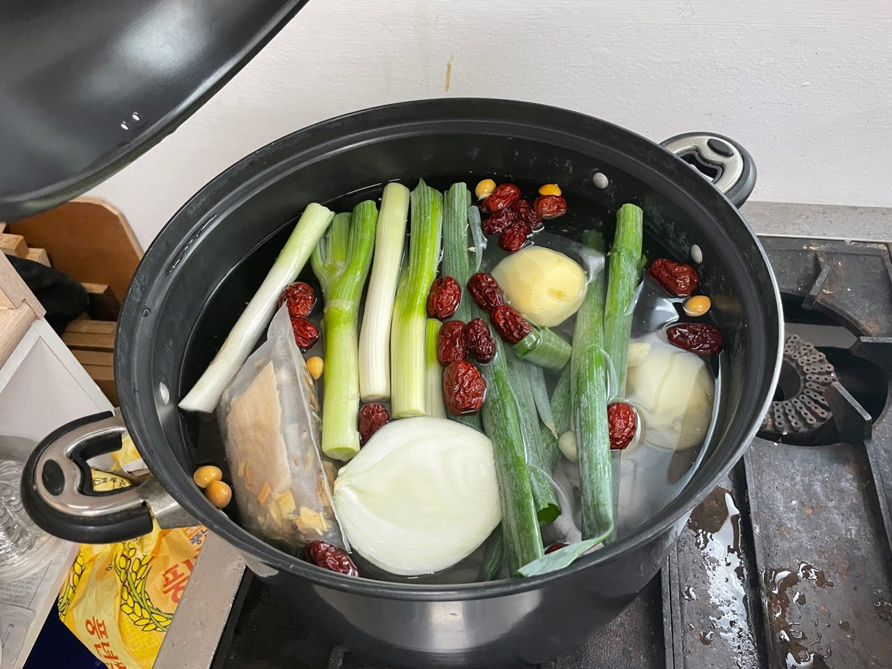 “선생님 일단, 여기에 닭들을 올려주시고 찹쌀 넣으면 돼요. 마늘이랑 대추는 1-2개씩 넣으면 될 것 같아요.”