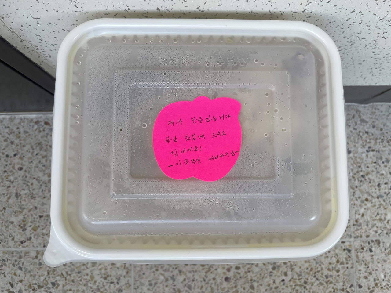 “선생님, 찹쌀도 오래 불리면 안 좋아요. 내일 출근하자마자 물 빼놓아주셨으면 해요. 냉장고에 넣어둘게요.”