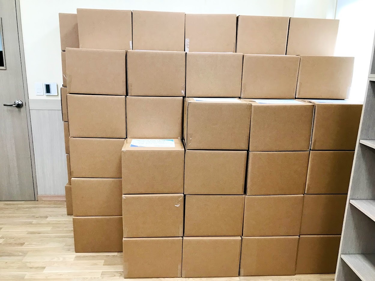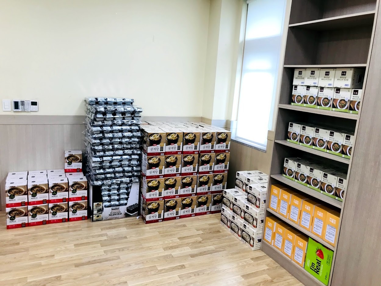 주민들께 드릴 식품 상자를 만들어주셨습니다.