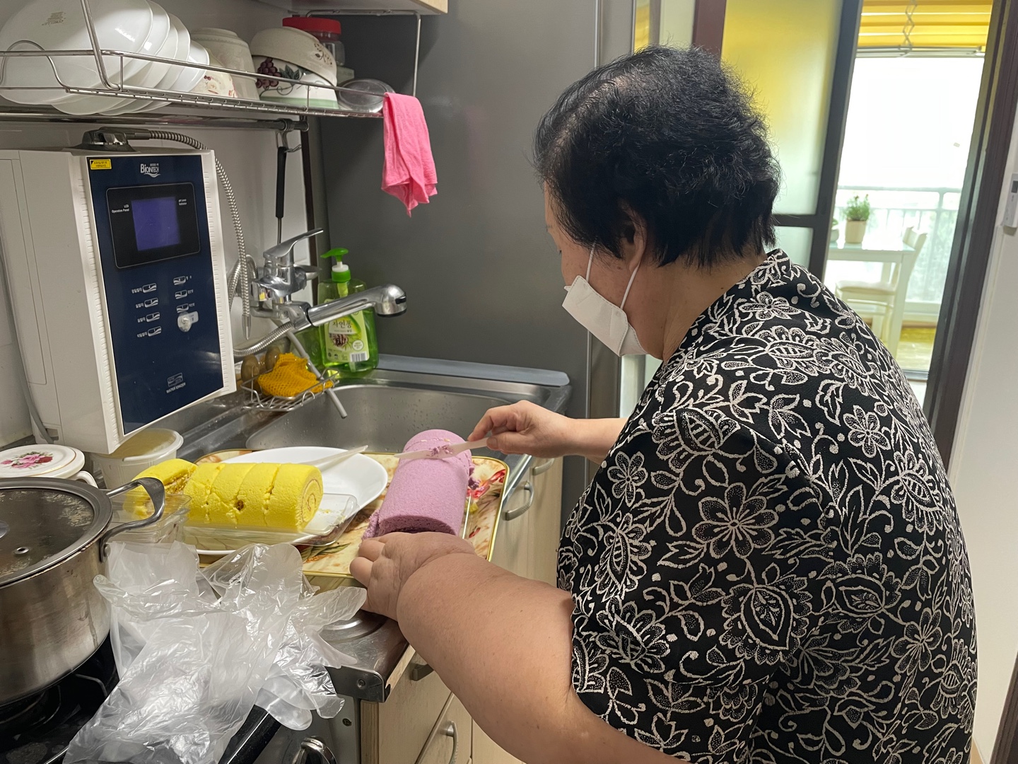 작은 비닐봉지에 빵을 넣는 게 힘들어서 봉지에 빵을 넣는 것만 거들어드렸습니다.