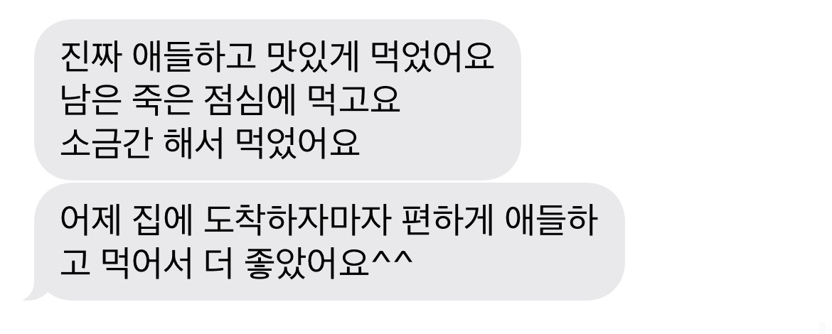 "네, 맛있게 먹었다고 하니까 다행이고 뿌듯하네요."