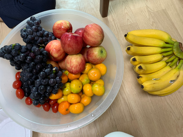 덕분에 포도, 사과, 귤, 방울토마토, 바나나. 색 조합도, 맛도 좋은 과일들을 샀습니다.