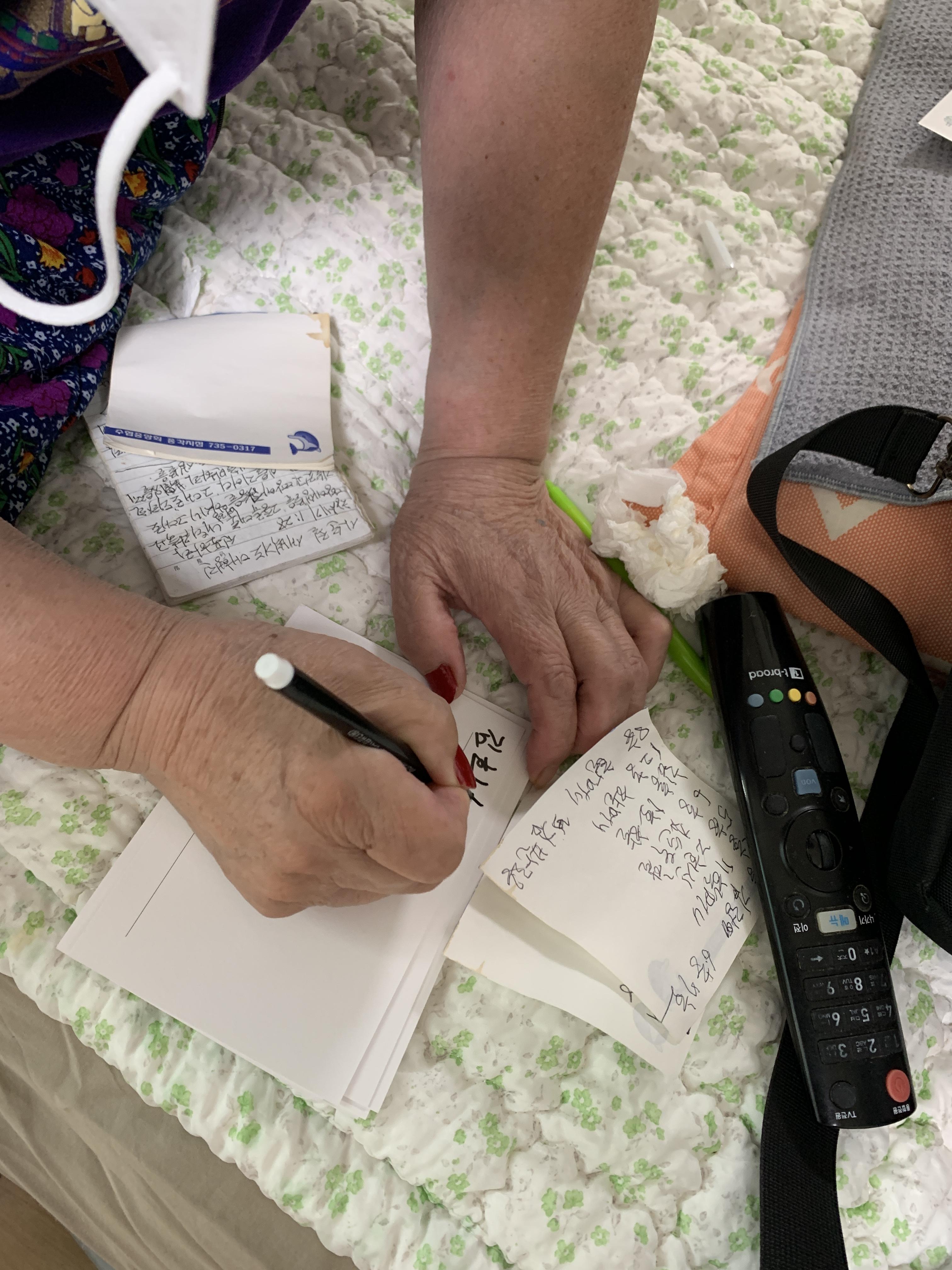 손이 떨려 글씨를 많이 못 쓰겠다고 하셔서 내용만 대신 써드렸습니다.