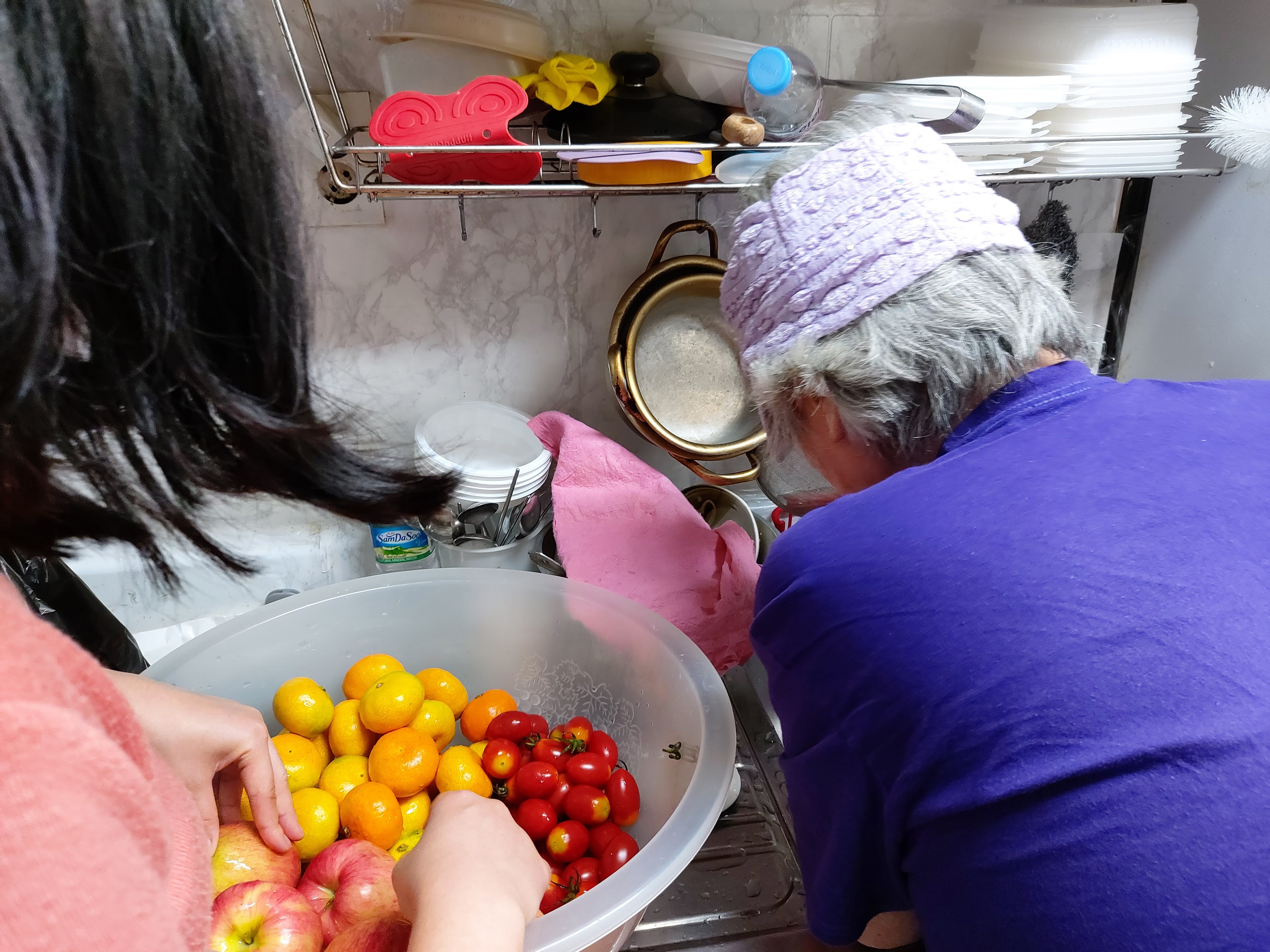 시장 구경 잘하고 집으로 돌아와, 1101동 어르신들께 과일 나눌 준비를 하였습니다.