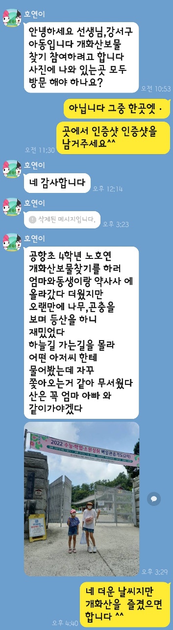 아이들이 가족과 함께 개화산에 올라 보물을 찾아도 좋습니다.