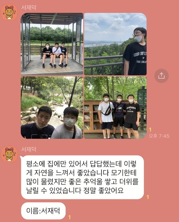 코로나19 상황에서 가족과 야외 활동을 하며 산책하고 소통하기를 바랐습니다.