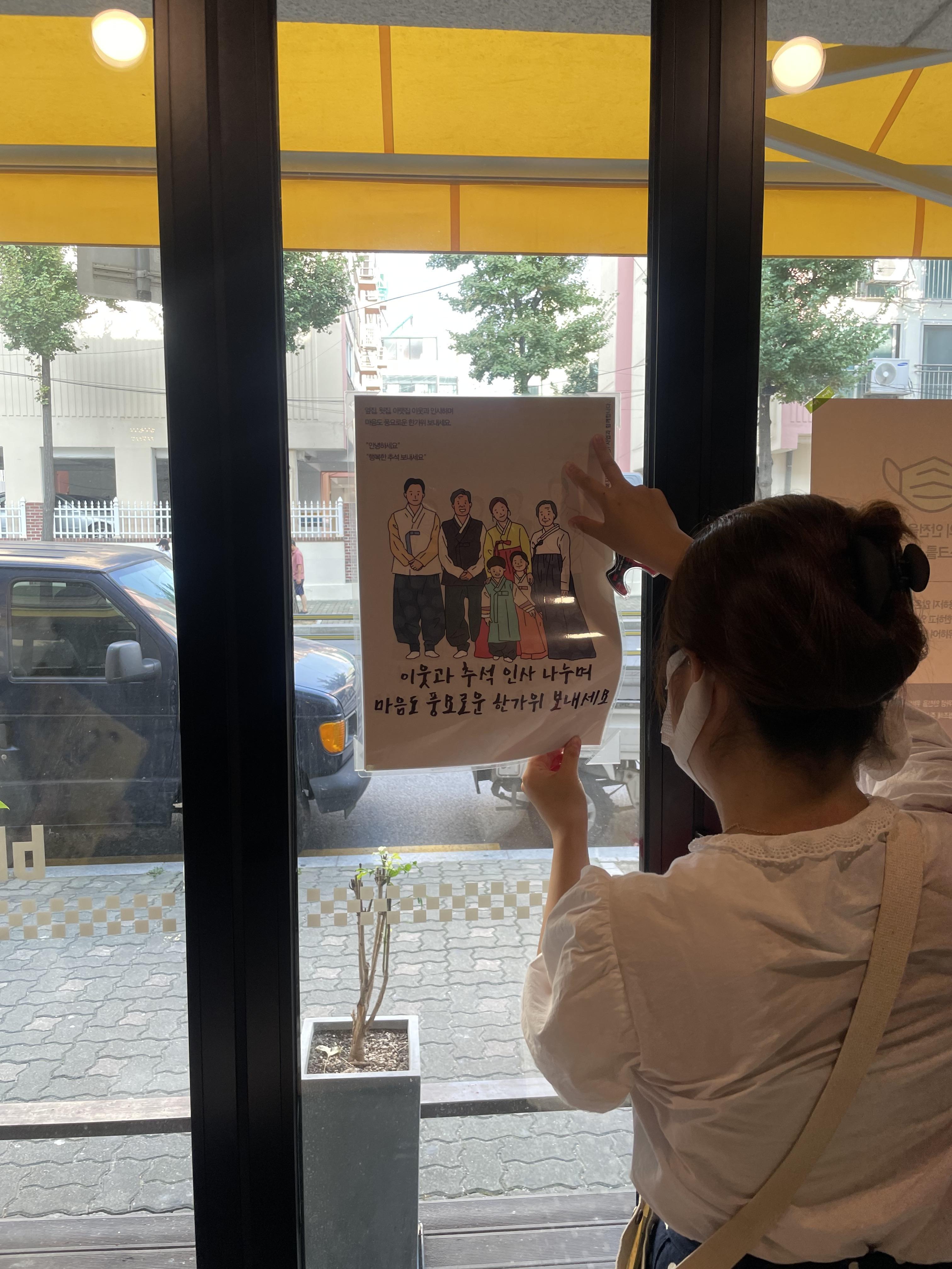 “포스터 보고 궁금해하는 손님들이 많이 계세요. 제가 손님들한테 인사캠페인이라고 설명드릴 때가 있어요~”