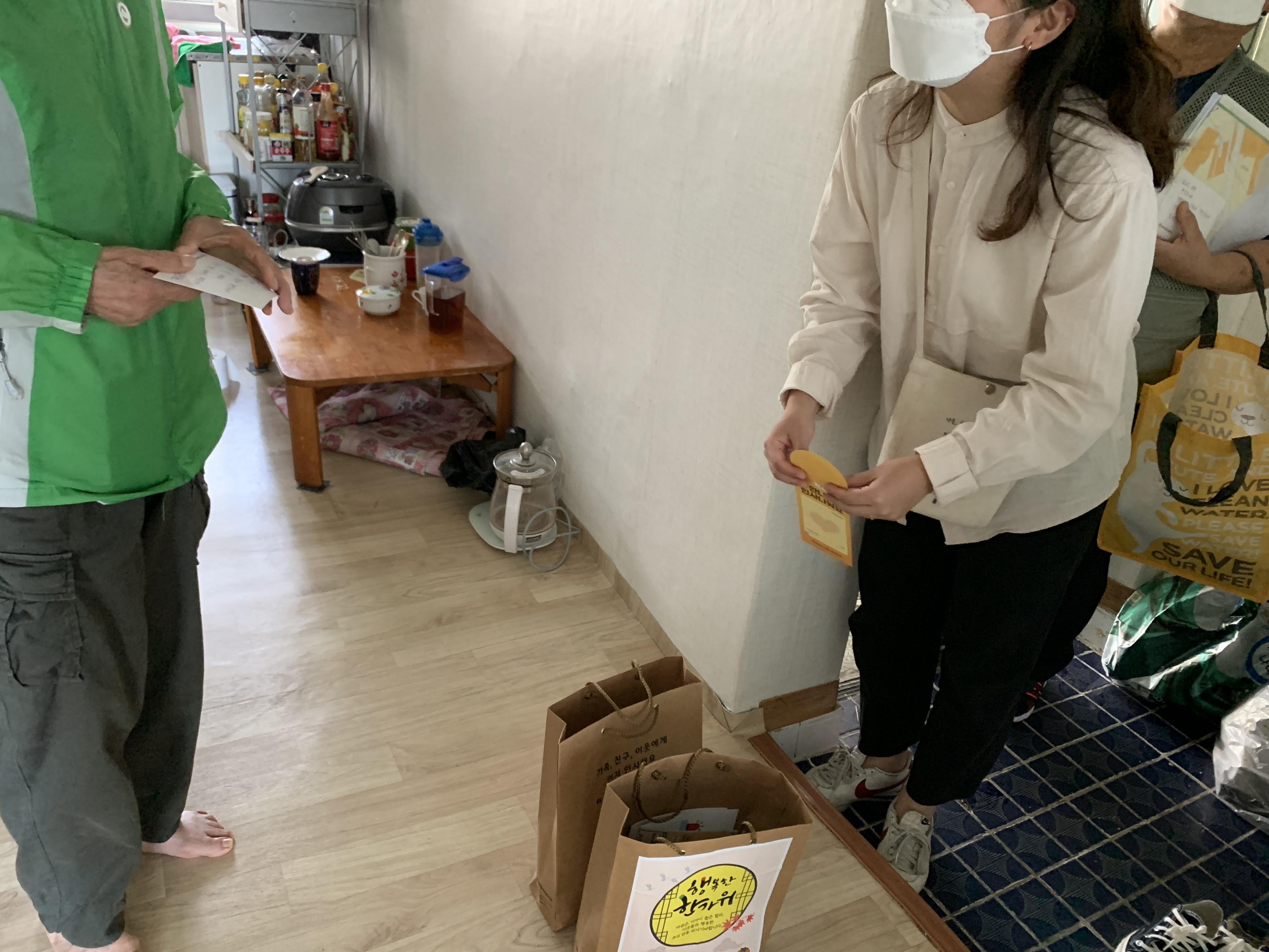 통장님께서 양손 가득 준비물을 가지고 오셨습니다.