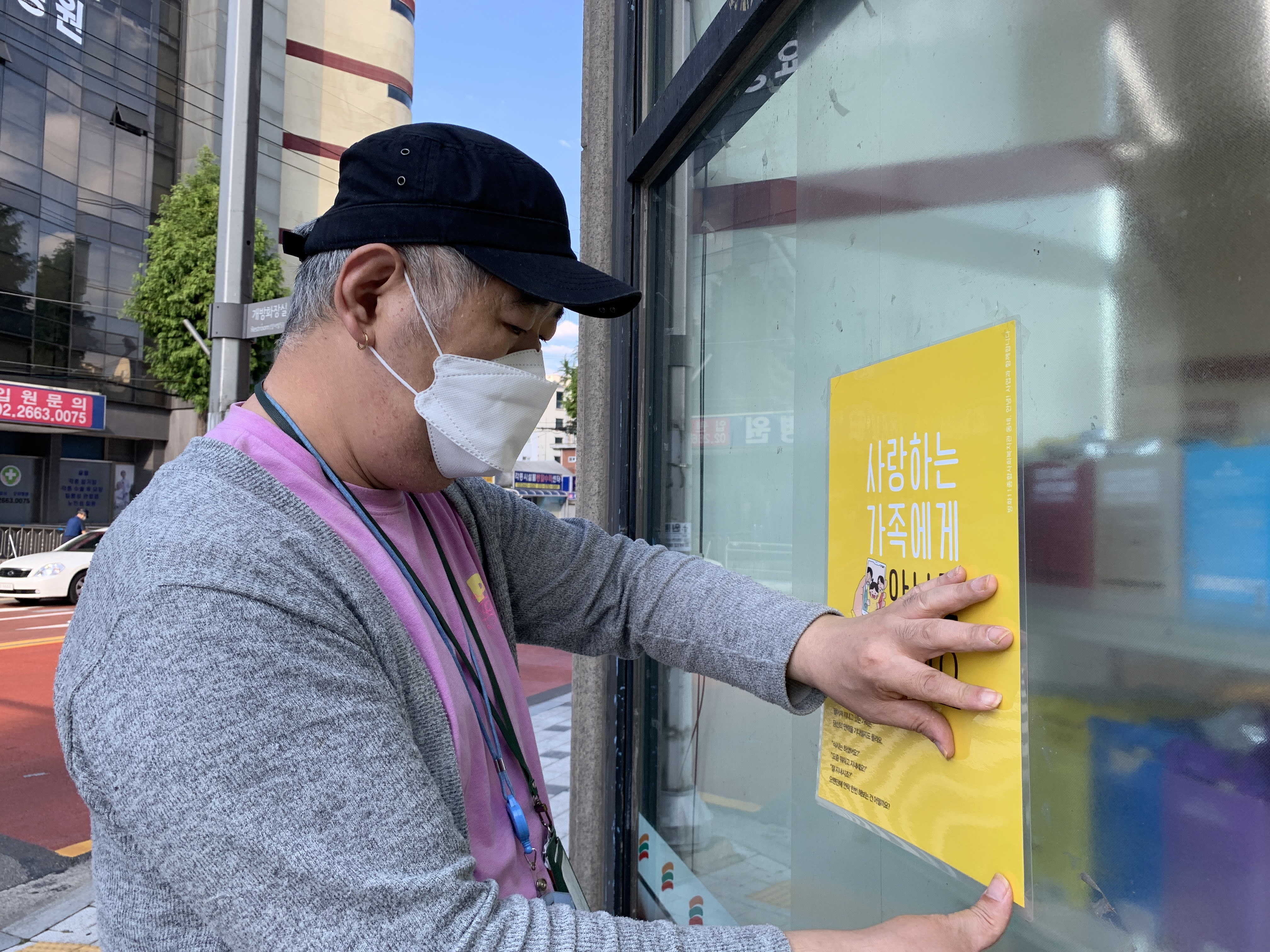 포스터를 붙이러 다니는 시각에 늘 11단지 입구쪽에 계시는 매니저님!