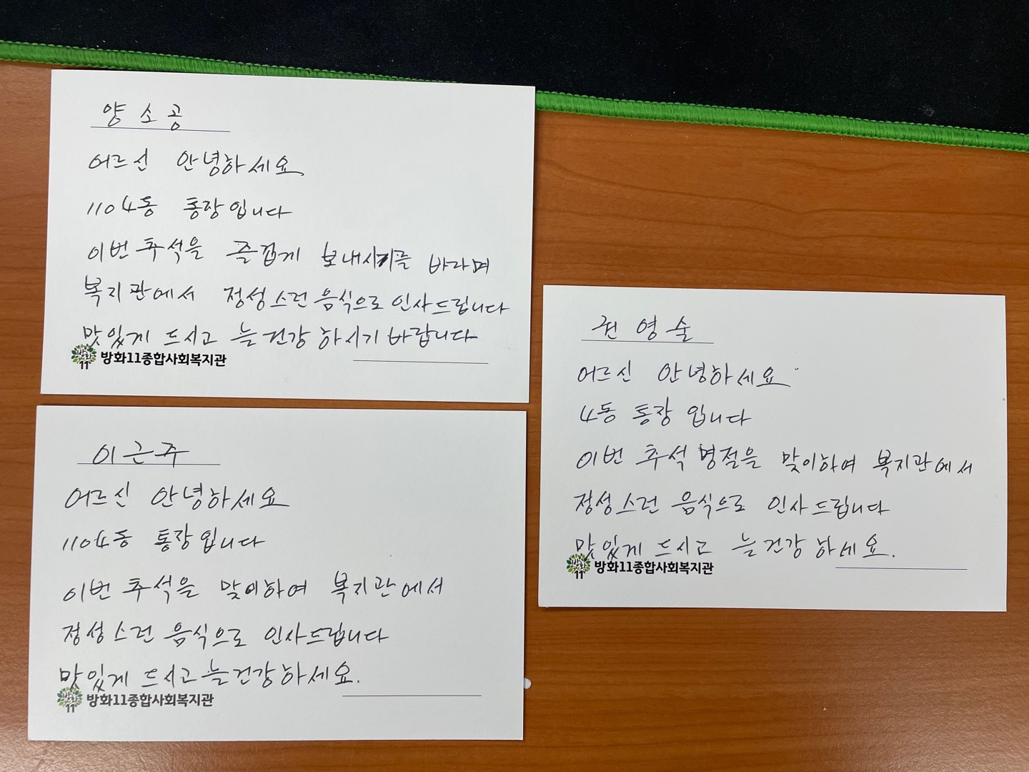 이번 추석은 방화2동주민센터와 연계하여 진행했습니다.