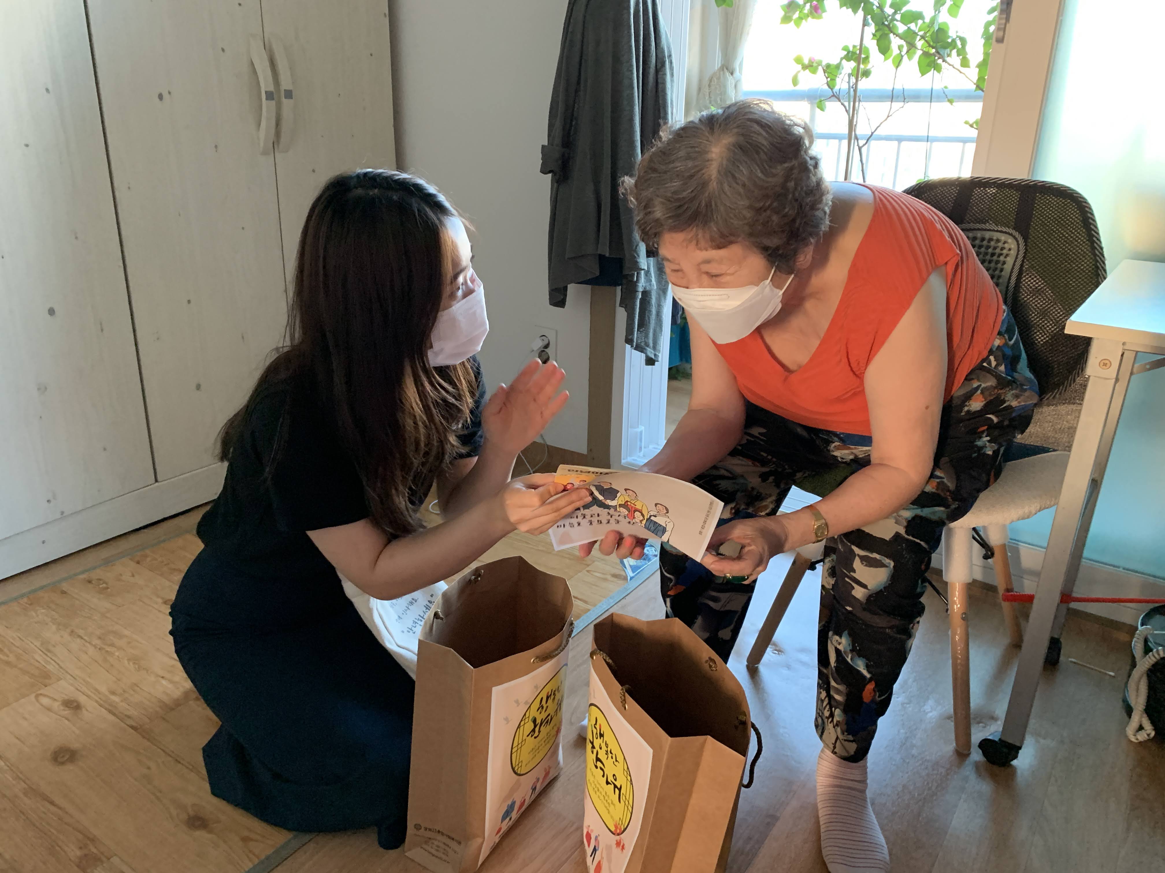통장님의 마음이 담긴 엽서는 사회복지사가 대신 전달하기로 했습니다.