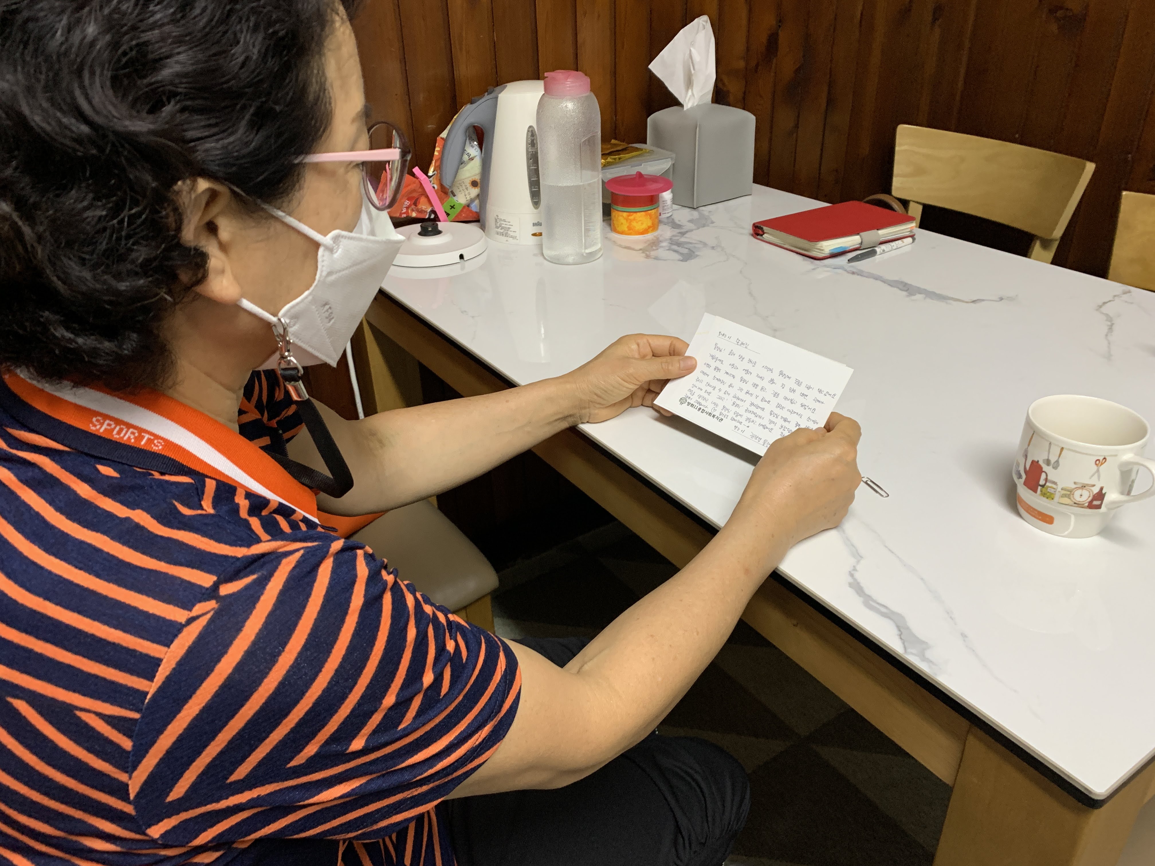 | Q. 사회복지사가 잔치 제안했을 때 어떠셨나요? A. 고립되어 지내시는 분들은 통장인 저도 방문하기 어려워요. 문도 잘 안 열어주시고요. 사회복지사 선생님이 가신다고 하니 함께 가겠다고 했죠. 제안이 반가웠어요. Q. 직접 담근 김치를 함께 전하셨는데 어떤 마음이셨나요? A. 내가 특별히 준비하지 않아도 우리 집에 있는 거 조금 나누면 되겠다고 생각했어요. 빈손으로 가는 것보다는 조금이라도 들고 가는 게 마음이 좋더라고요. 명절을 앞두고 있어서 가족들이랑 먹으려고 나박김치 담궜거든요. 어르신들은 국물이랑 같이 드시는 게 좋으니 감주를 만들까 생각했는데 잘 상하는 음식이라 못했어요. Q. 이렇게 이웃과 나누시니 어떠셨어요? A. 좋죠. 남을 도와주며 사는 게 즐겁잖아요. 거창하게는 못해도 사소하게 하면 좋죠. 주는 사람, 받는 사람 모두 부담스럽지 않은 게 좋아요. Q. 잔치 후에 무엇이 달라지셨나요? A. 김 씨 어르신이 문도 안 열어줄 수도 있겠다고 생각했는데 이번에 만날 수 있어서 다행이었어요. 잔치 후에 또 찾아뵙진 않았는데 얼굴도 보고 대화도 해봤으니 다음에는 더 편하지 않을까 싶어요. 갈수록 마음을 여시겠죠. 처음이 어려우니까요. Q. 이웃이 서로 인사하고 나누는 이번 잔치 방식에 대해 어떻게 생각하세요? A. 이걸 했기 때문에 김 씨 어르신 같은 분을 찾아갔어요. 옛날처럼 경로잔치 크게 열고 초대해서 하는 거면 김 씨 어르신 같은 분은 안 가셔요. 잔치 하는 줄도 잘 모르실걸요? 이번에 통장들한테 만날 분을 추천받기 잘했어요. 우리는 돌아다니면서 집주인을 알고, 이웃들 사정을 조금 아니까 물어보기도 하고 그렇게 사정을 알아요. 추석이라도 아무도 오가지도 않는데 아무래도 명절 기분이 나셨겠죠? Q. 다음에도 잔치에 참여할 마음이 있으신가요? A. 도와드려야죠. |