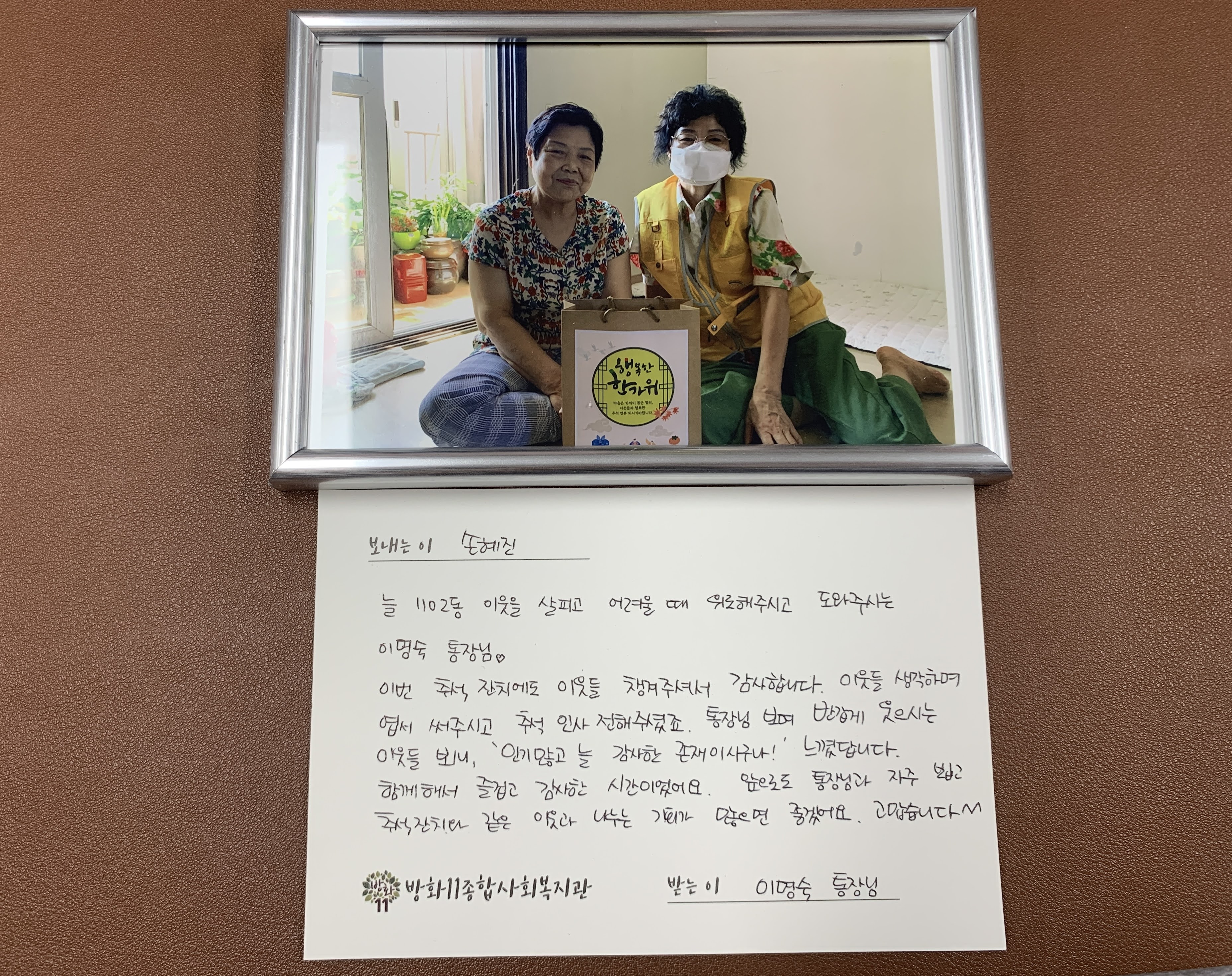 동네사람들 추석잔치에 참여해주신 통장님들과 이웃께 감사인사 드렸습니다.