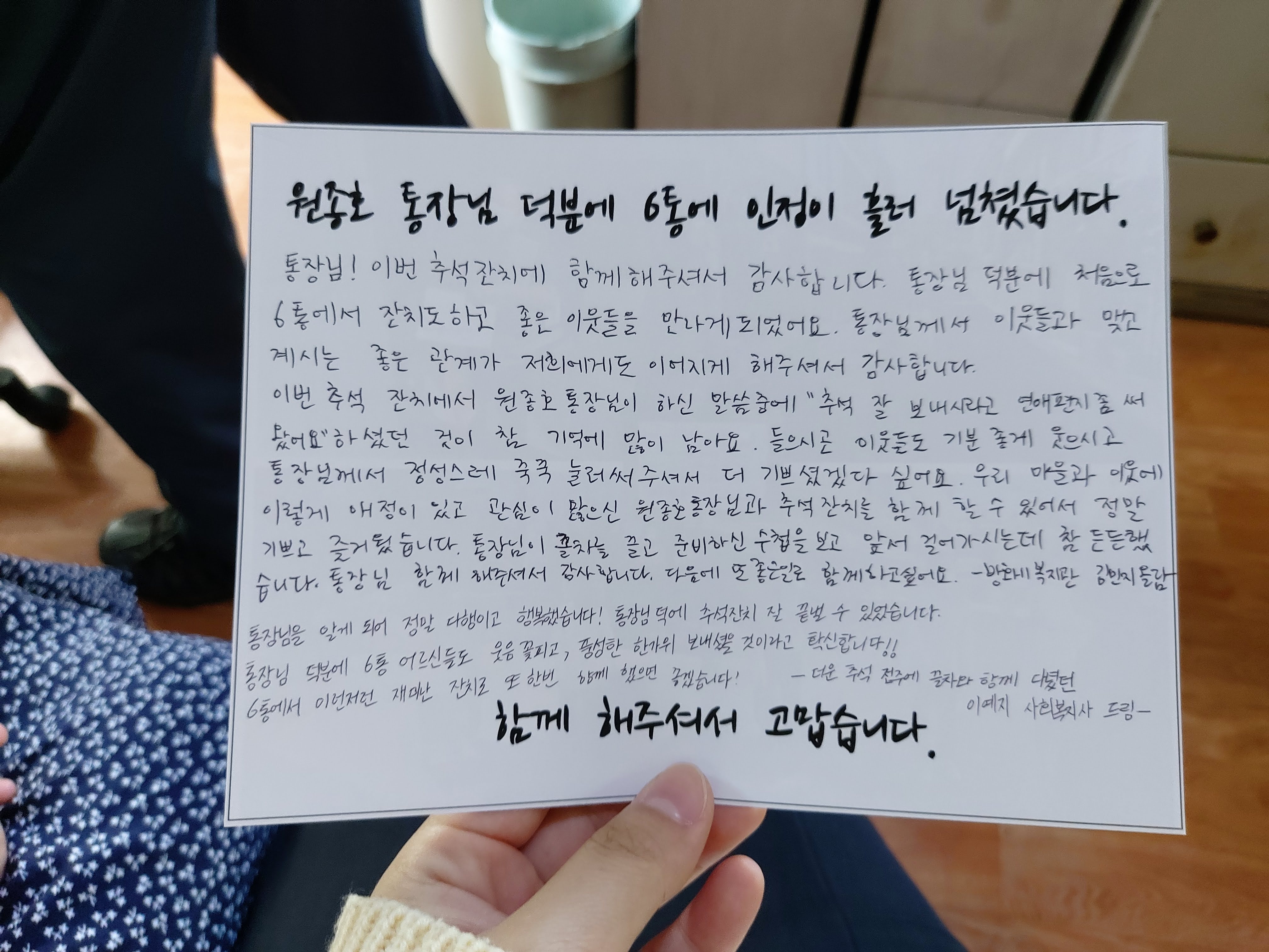“6통 추석 잔치 함께해주셔서 너무 감사합니다.