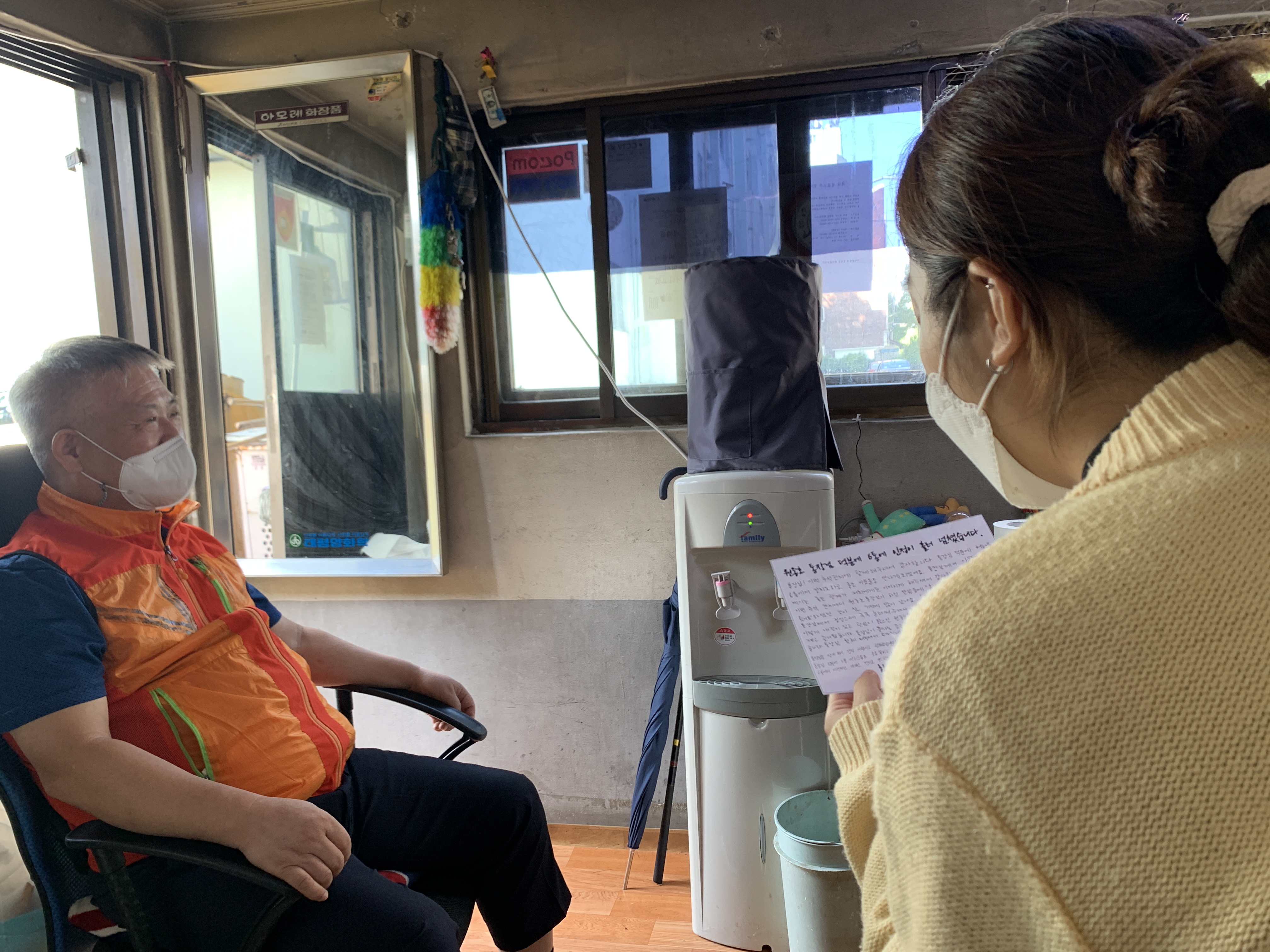 통장님은 김민지 사회복지사와 제가 편지를 읽어드리는 동안 눈시울이 붉어지셨습니다.