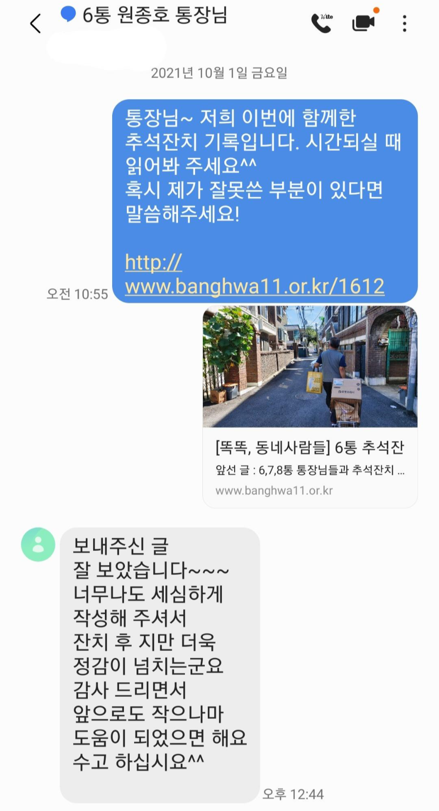 [똑똑, 동네사람들]6통 추석잔치 감사인사 및 평가