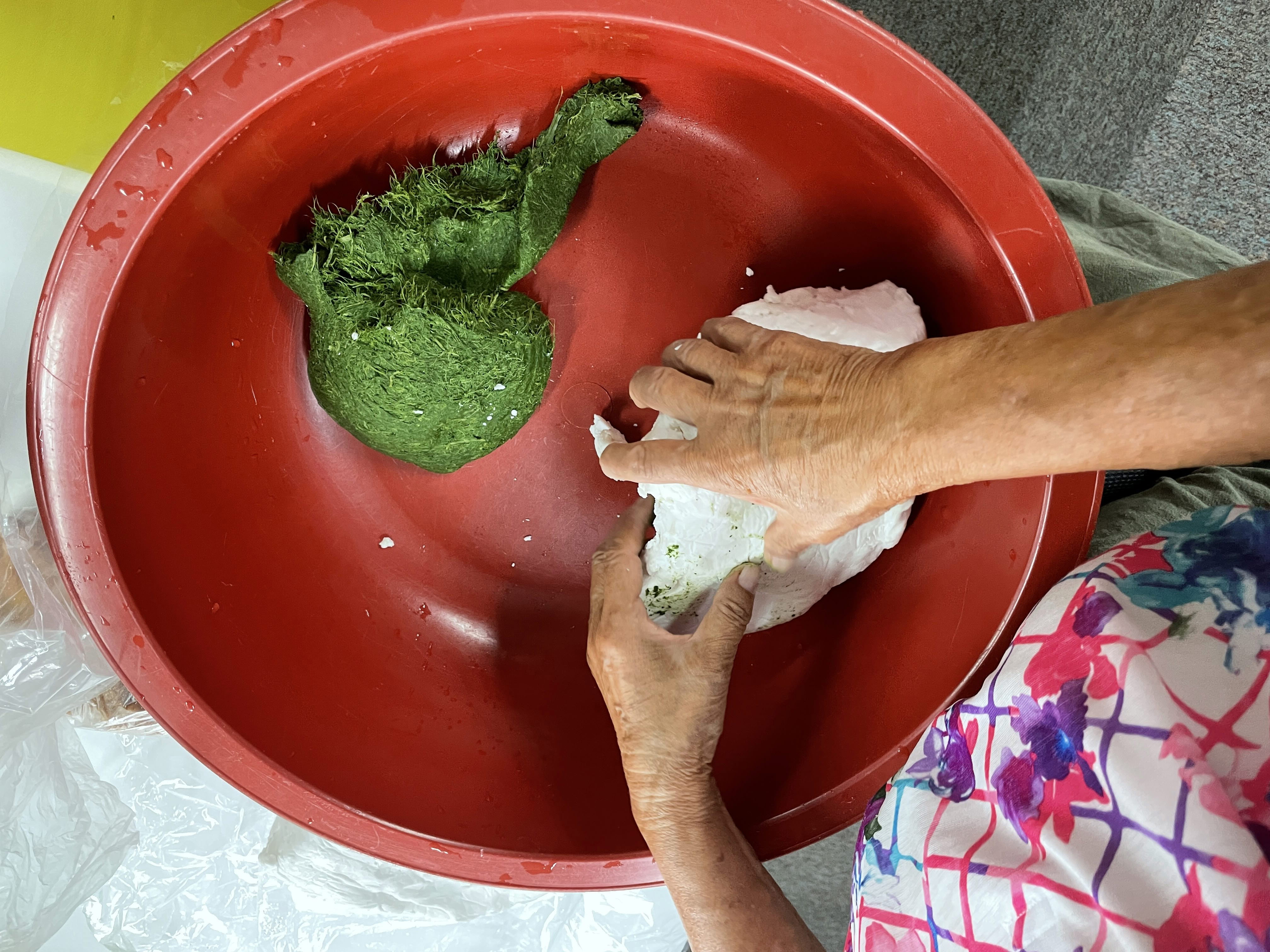 이영저 어르신께서 작년 경험을 말씀하시며 쑥을 넣어 만든 송편이 훨씬 맛있고,