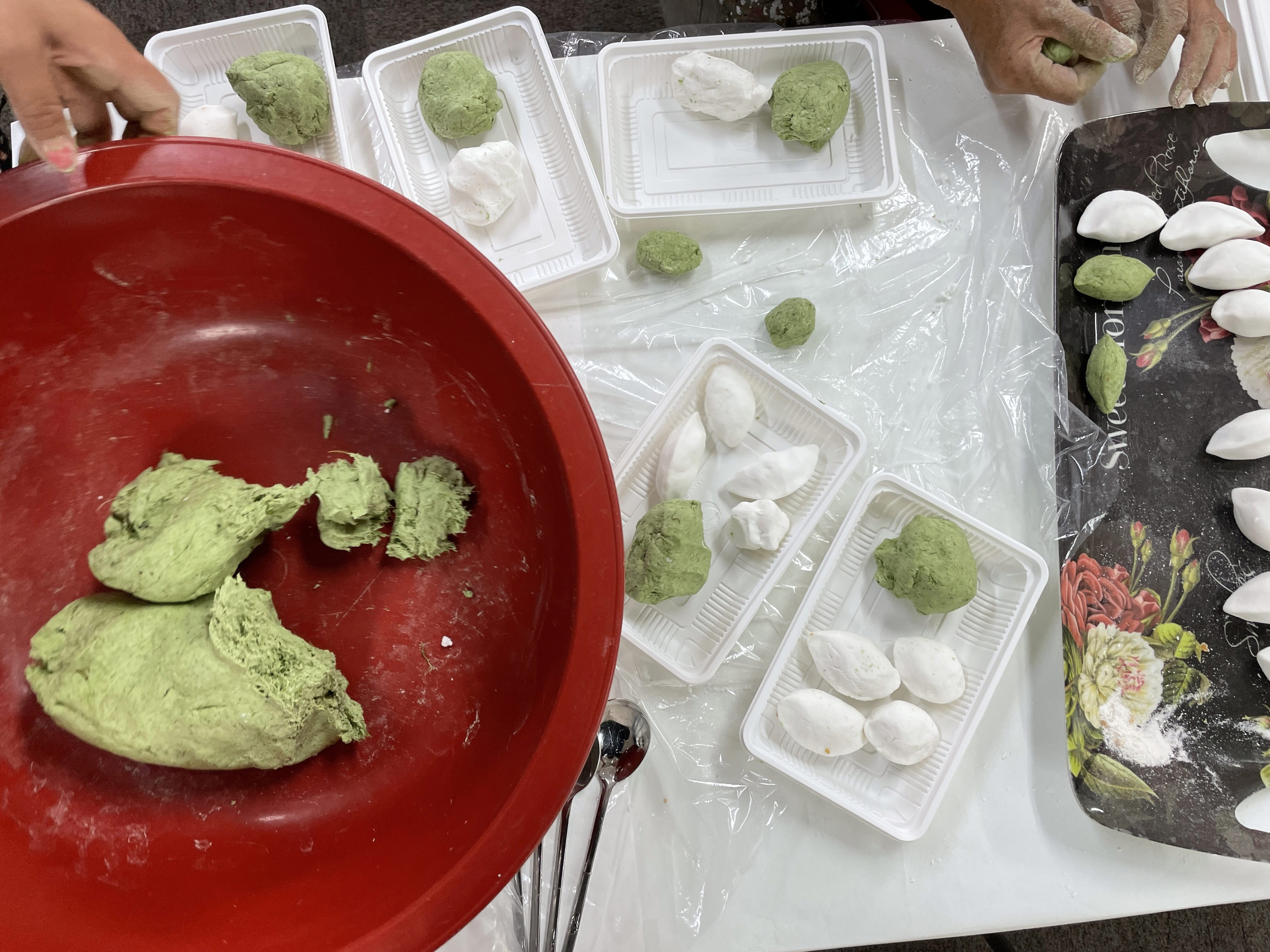 쑥을 넣어 다시 반죽하셨습니다. 반죽하는 스킬도 있다고 하십니다.
