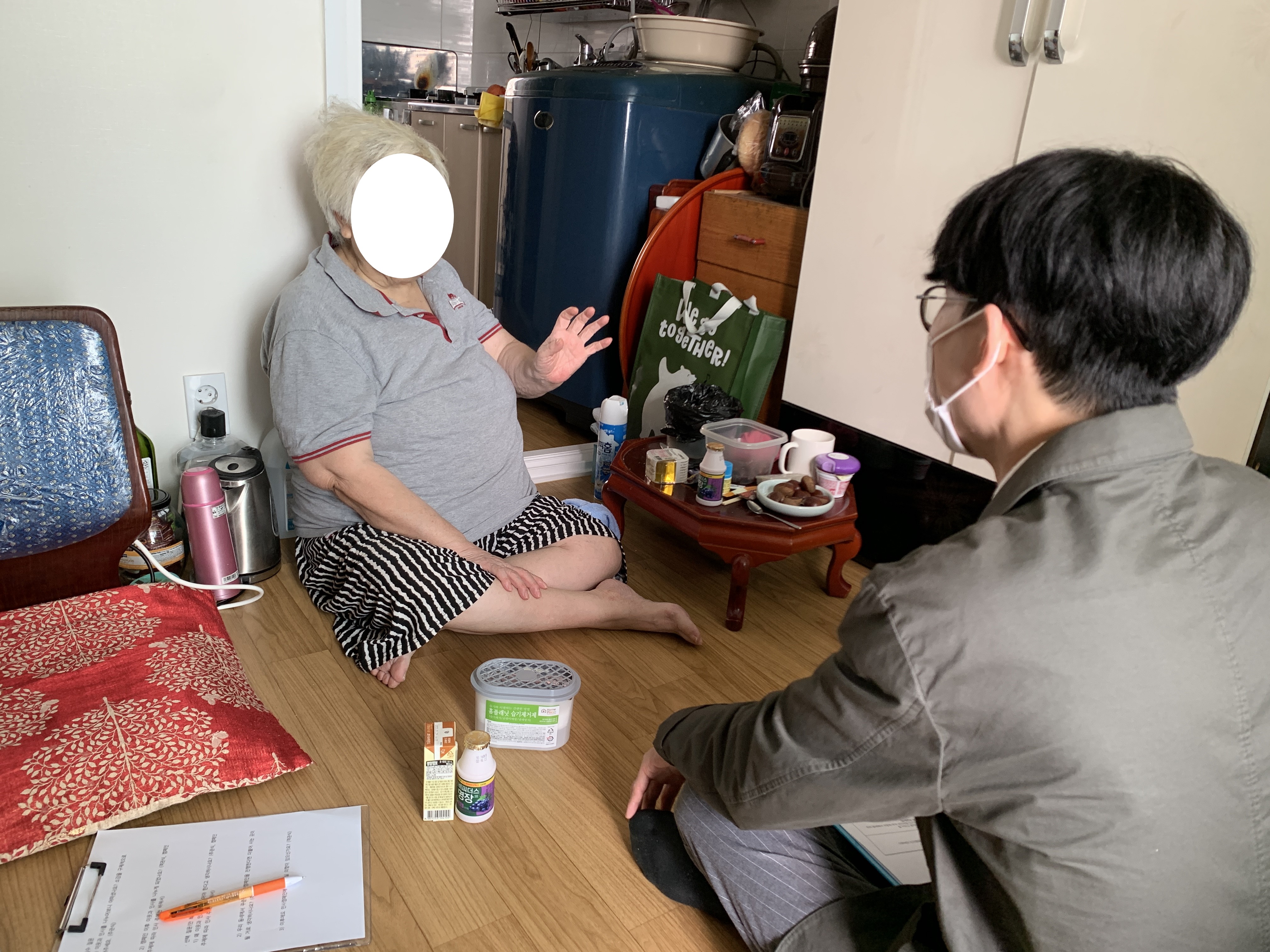 어르신 댁에는 옆집 이웃 분과 요양보호사 선생님이 계셨습니다.
