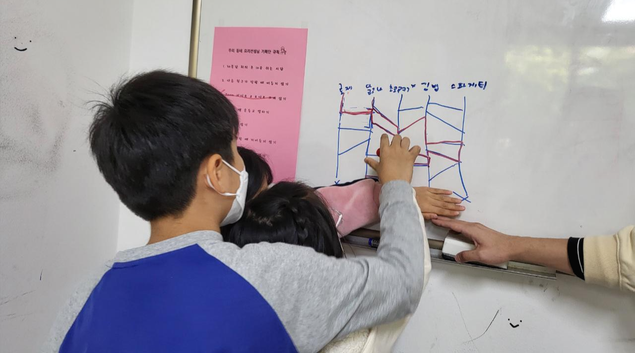 아이들이 서로 의견을 나누고 고민했지만 결정되지 않습니다.