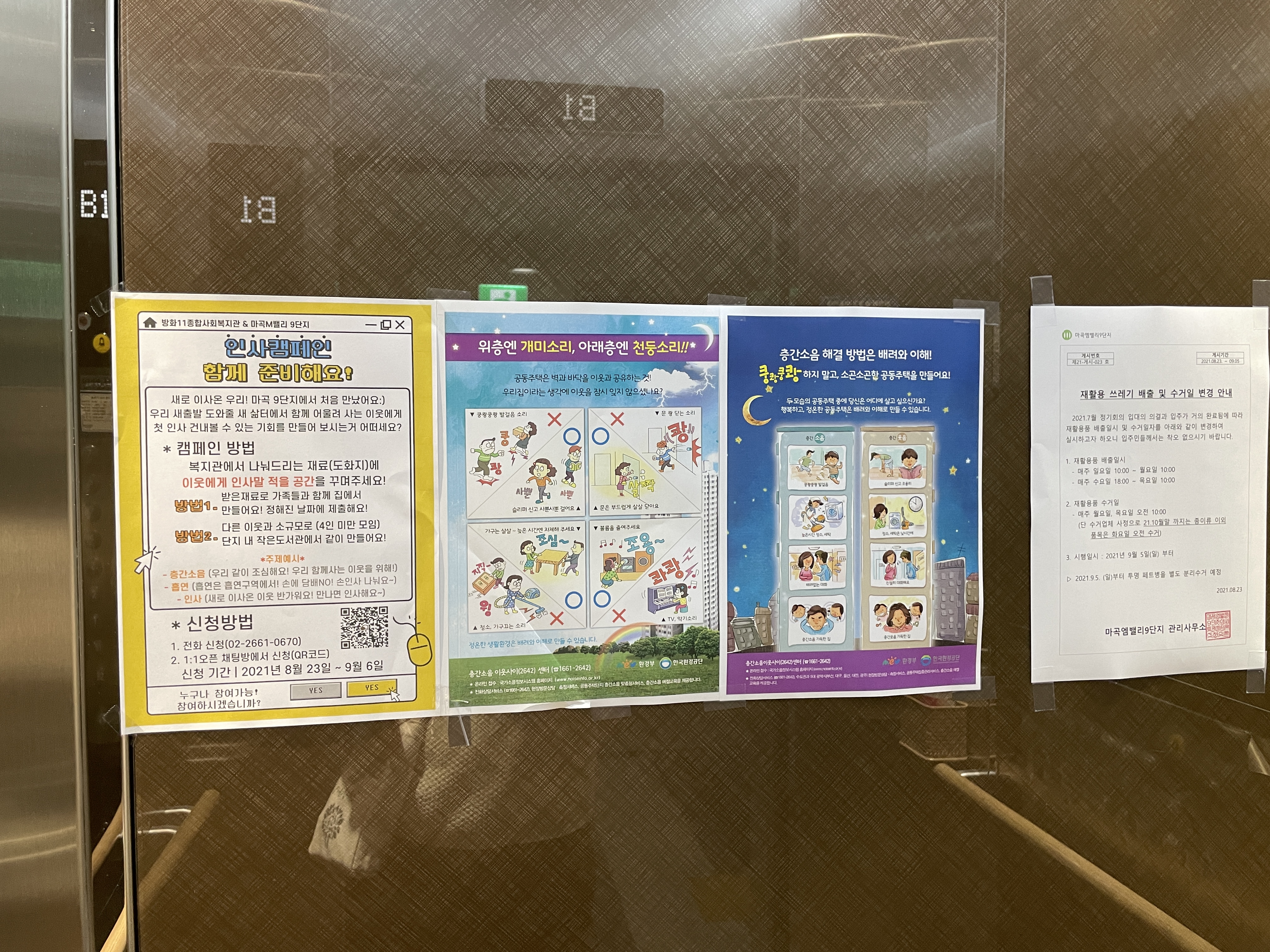 덕분에 마곡9단지에서 승강기를 오르내리는 이웃 정을 느낄 수 있었습니다.