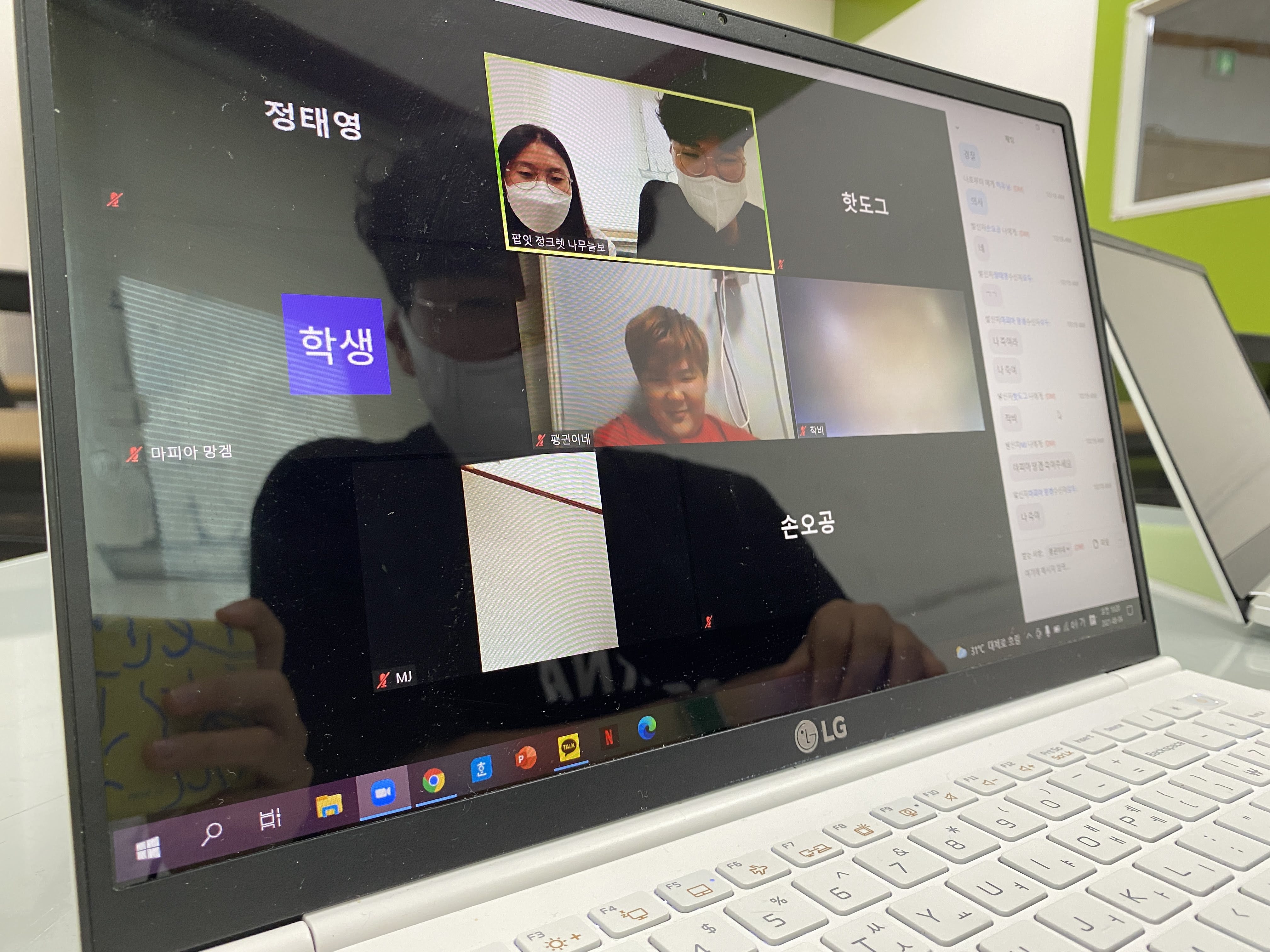 카메라는 켜지 않았지만, 마이크 켜고 신나게 말합니다.
