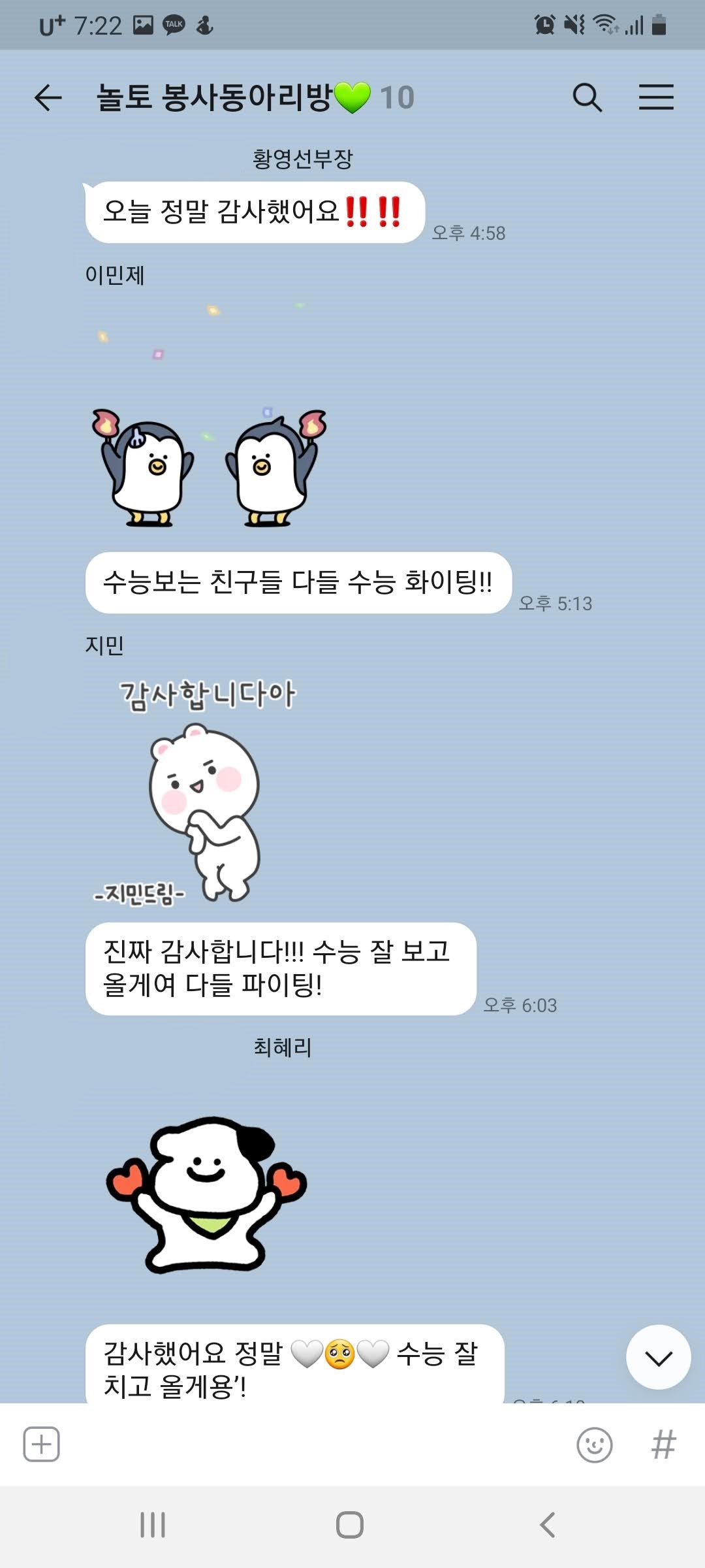 모임 이후 단체 채팅방에서도 서로 고마운 마음을 전하며 다음 만남을 기약했습니다.