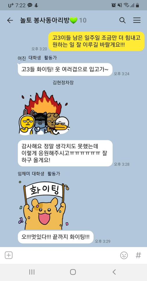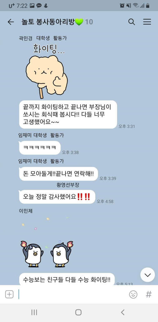이번 모임이 수능 이후 놀토 봉사동아리 활동으로 또 이어지면 좋겠습니다.