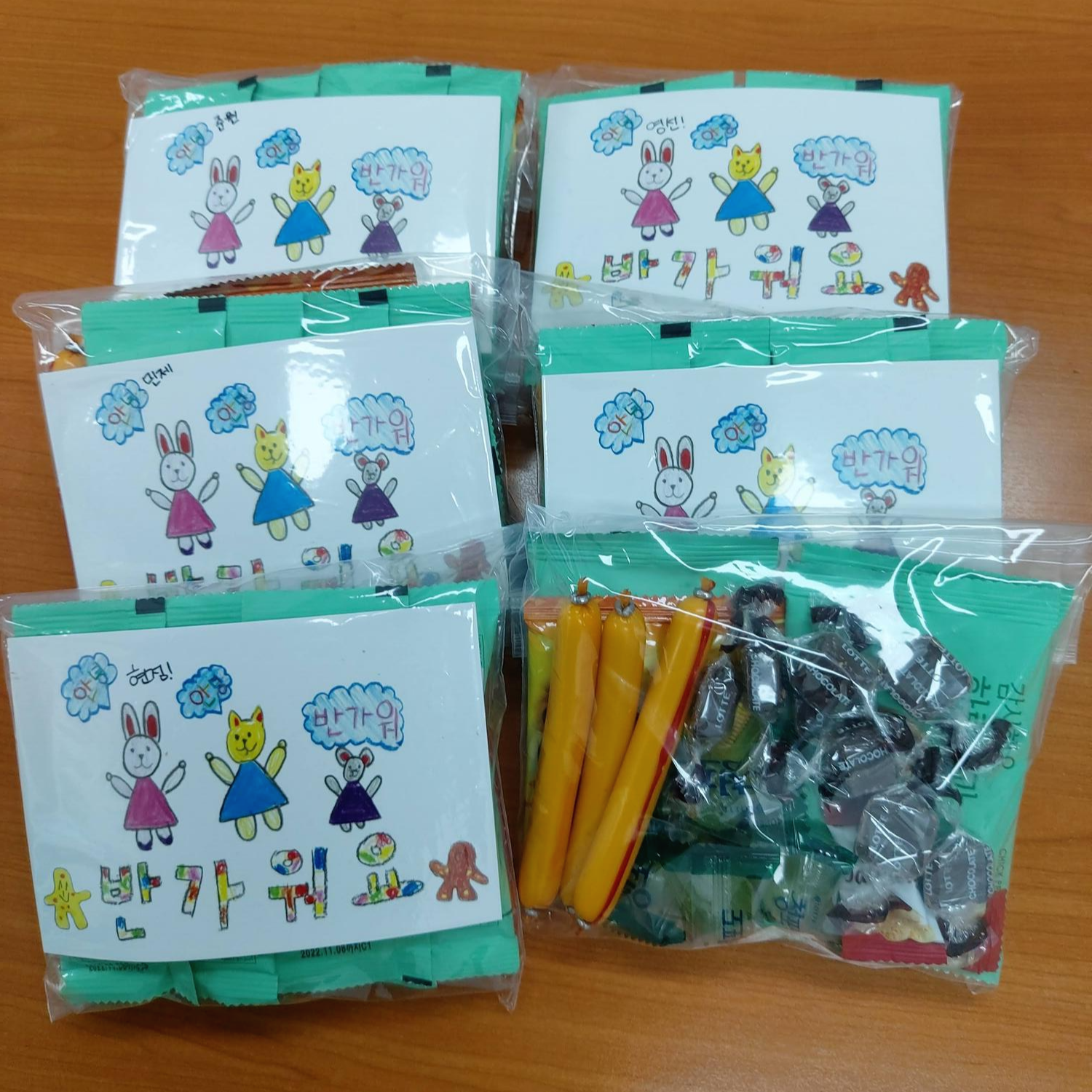 엽서를 간식 꾸러미에 같이 넣는 것도 좋겠다고 했습니다.