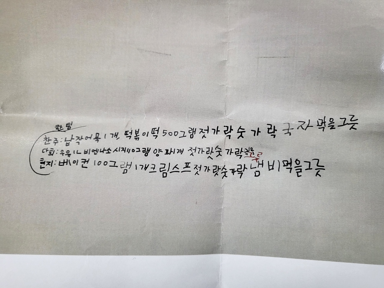 빠르게 환영편지 쓰고 요리실로 내려가 선생님께 환영인사드렸습니다.