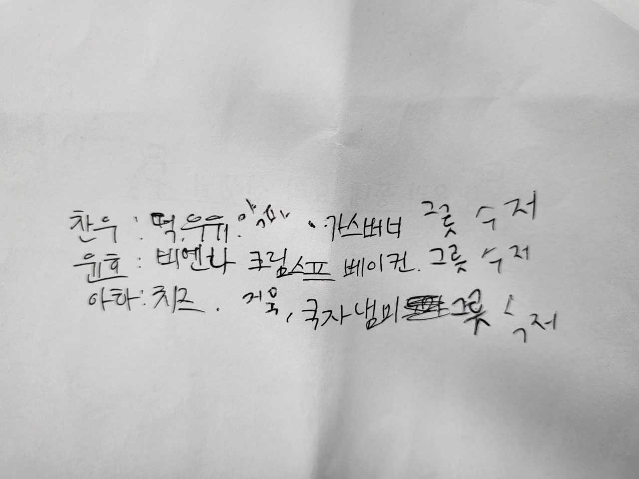 로제떡볶이 재료를 알기 위해 회의하는 날입니다.
